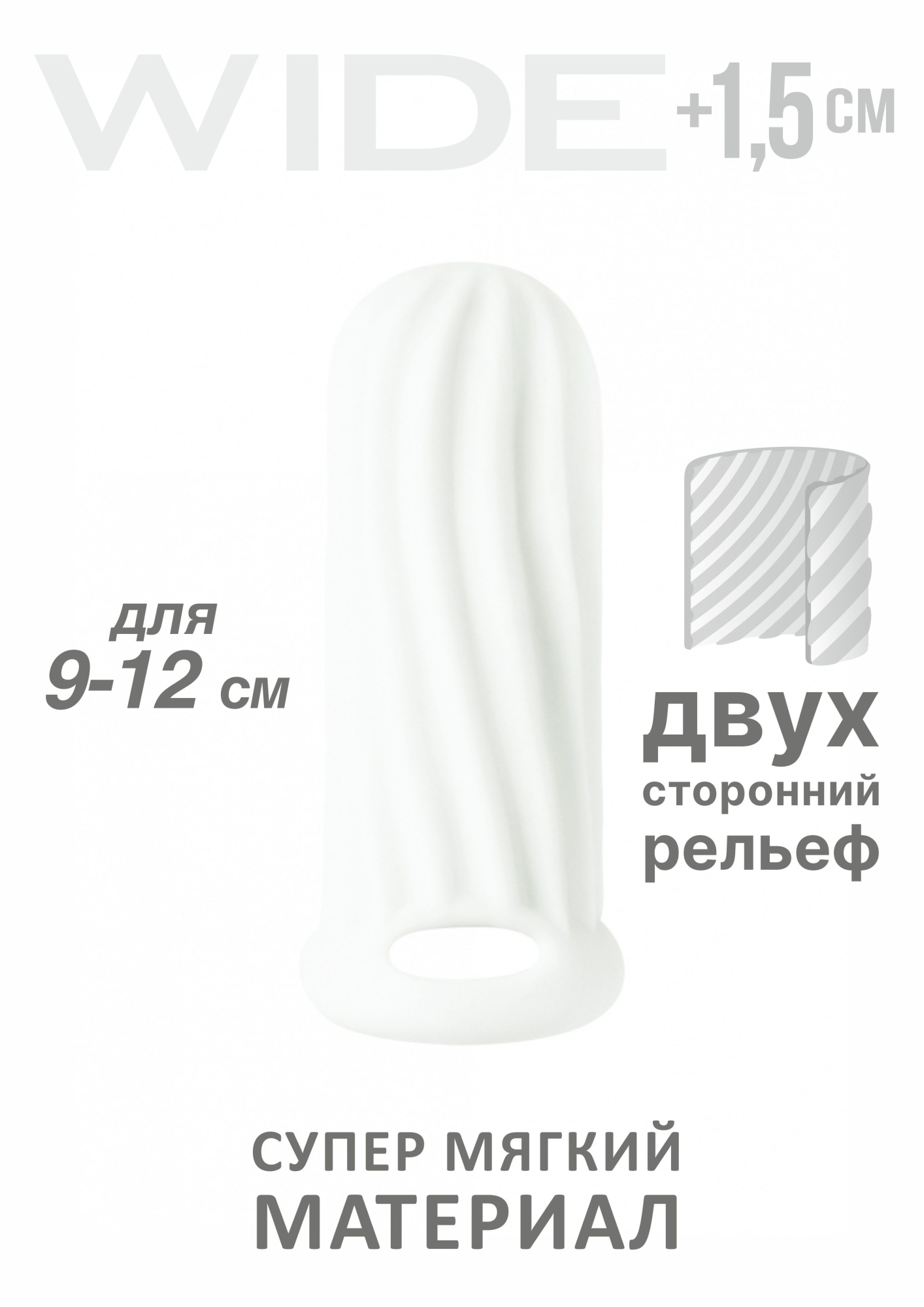 Насадка Wide коллекции Homme обеспечивает увеличение размера пениса в ширину. Материал насадки - гипоаллергенный, создающий имитацию мягкой и шелковистой «кожи» ТПЕ. Фиксирующее кольцо на мошонку не только удерживает фаллоудлинитель, но и благодаря сдавливанию может усиливать эрекцию. Двухсторонний нереалистичный рельеф насадки позволит одновременно стимулировать сразу обоих партнеров во время полового акта и дополнительно подарит приятные ощущения. Благодаря толстым стенкам, насадка увеличивает диаметр пениса до 1,5 см. Насадка отлично тянется, продлевает время интимной близости и компенсирует анатомическое несоответствие между партнерами. Материал ТПЕ, общая длина 11 см, длина внутреннего тоннеля 10 см, толщина стенки 7 мм