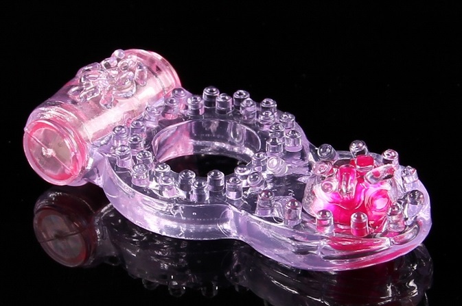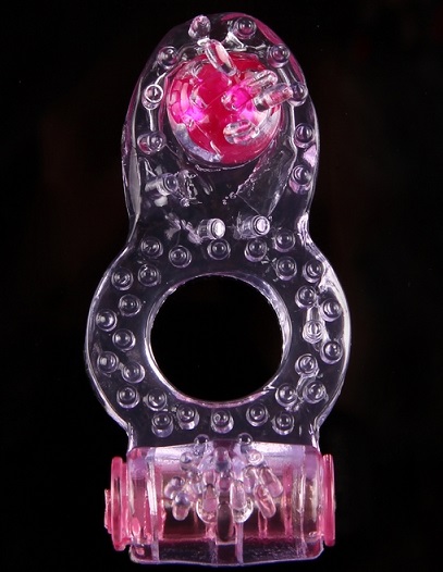 Эрекционное кольцо с вибрацией.Имеет рельефную поверхность и клиторальный стимулятор для большего наслаждения. Выполнено из ПВХ.Растягивается до нужных размеров,диаметр в нерастянутом состоянии -1,7см.