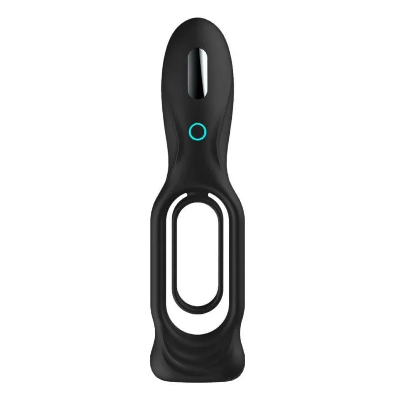 Вибрирующее эрекционное кольцо Cock Ring от Shots Media – перезаряжаемое устройство, предназначенное для поддержания эрекции и стимуляции. Кольцо имеет двойную структуру для фиксации на стволе пениса и дополнительно на мошонку. Кольцо меньшего диаметра закрепляется на основании члена, что будет мягко препятствовать оттоку крови. Кольцо большего диаметра предназначено для мошонки, что обеспечивает утяжку яичек, дополнительно замедляя процесс эякуляции. Стимулятор в виде ручки будет дополнительно стимулировать клитор партнерши вибрациями при половом акте.