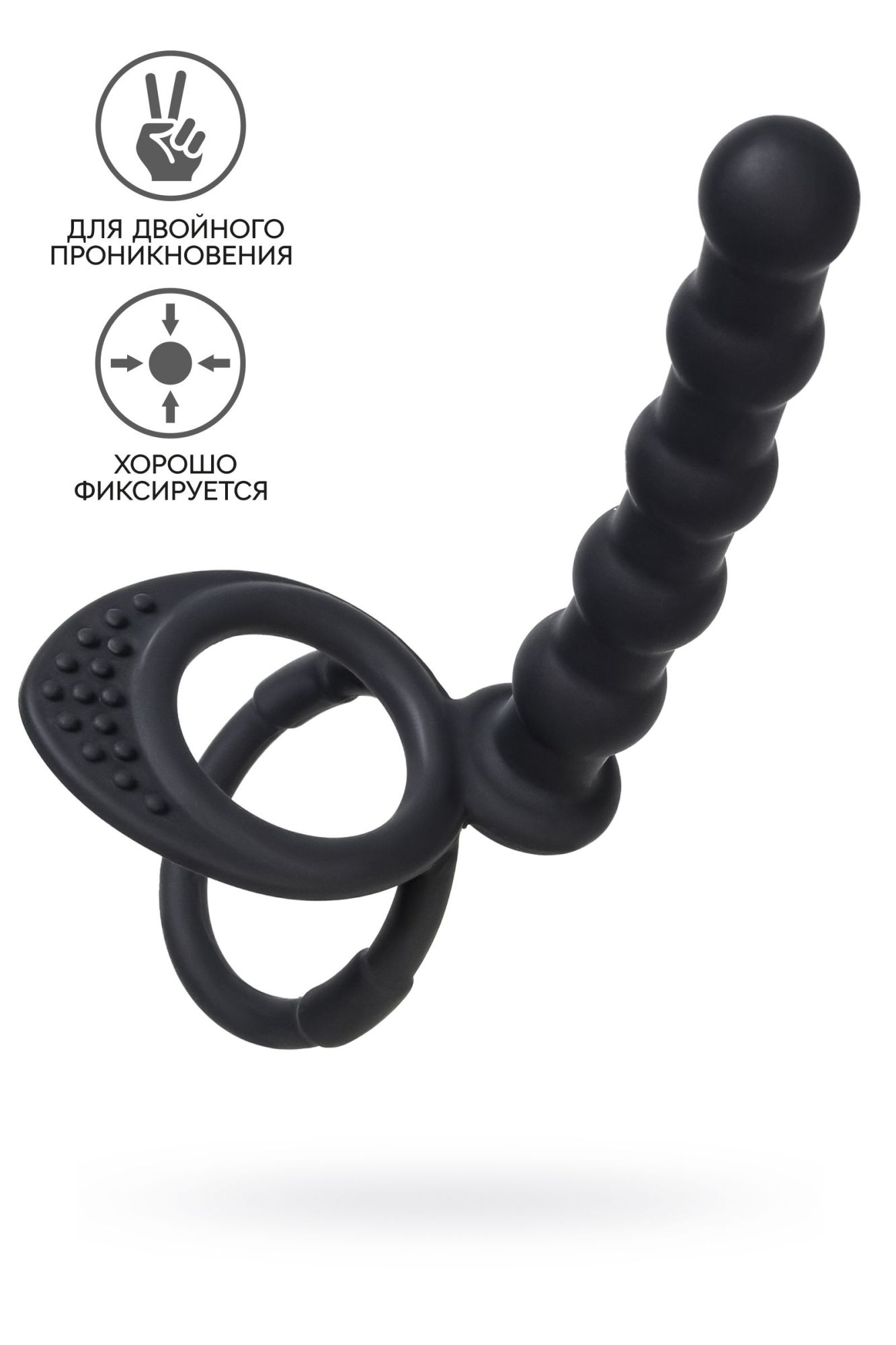 Рельефная насадка на пенис для двойного проникновения – это отличный выбор для любителей продвинутых сексуальных развлечений без участия третьих лиц. Насадка надежно фиксируется на теле двумя кольцами, которые плотно обхватывают ствол пениса и мошонку. Это оказывает дополнительный эффект для продления полового акта, а партнер в это время получает в два раза больше удовольствия, что ускоряет приближение оргазма. Шарики на стволе насадки придают пикантности проникновению. Пять анальных бусин стимулируют чувствительный сфинктер, усиливая наслаждение принимающего партнера. Материал насадки – гипоаллергенный медицинский силикон. Рабочая длина насадки 12,5 см, диаметр в самой широкой части 2,3 см. Диаметр колец 3,7см/ 4,5 см. Материал: силикон Цвет: черный