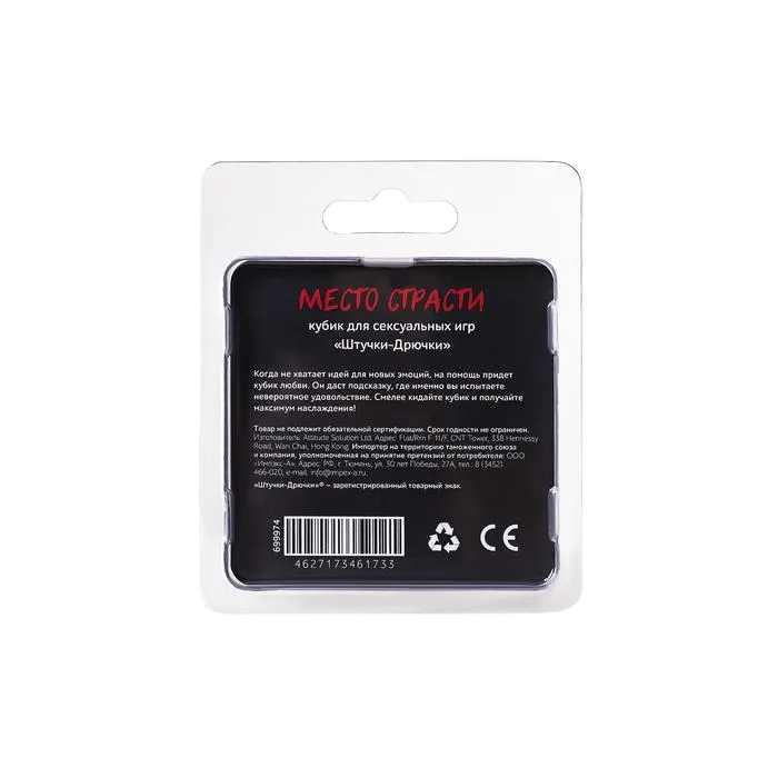 Товар будет интересен абсолютно разной аудитории: тем, кто ищет шутливый подарок на особый случай или тем, кто любит дарить пикантные сувениры без повода и просто посмеяться, а также тем покупателям, которые хотят внести разнообразие в свою интимную жизнь. Кубик удобно помещается в руке, выполнен из высококачественного пластика, упакован в блистер.