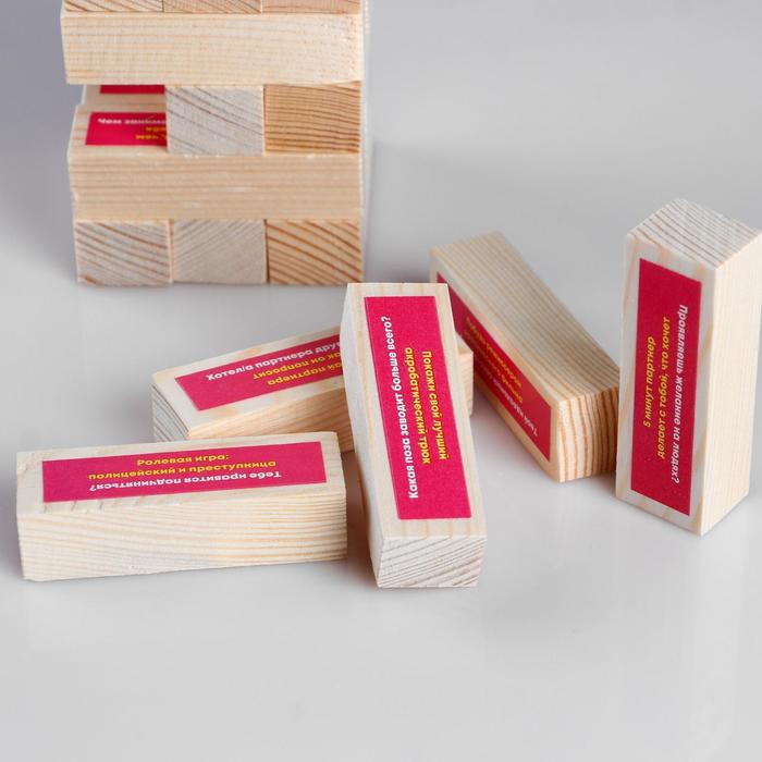 На каждом из брусков есть вопрос и задание — дерзкие, каверзные и откровенные, на грани между смущением и разоблачением.