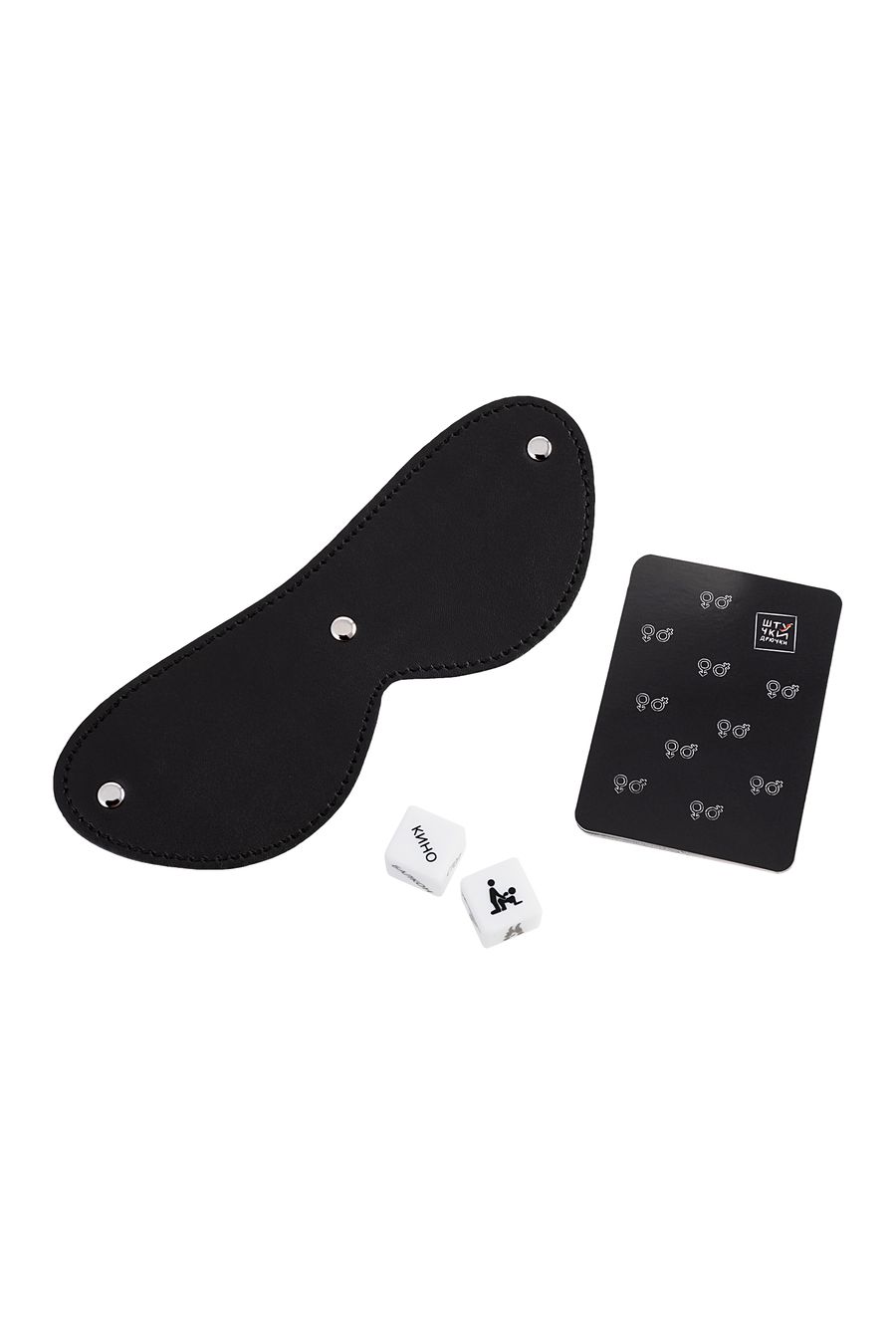 Когда не хватает идей для романтического свидания или страстной прелюдии – набор аксессуаров в игре от бренда «Штучки-Дрючки» придет на помощь! Кубики дадут подсказку, где и в какой позе вы испытаете невероятное удовольствие, сценарии помогут определиться с ролью, а стильная маска добавит образу пикантности.