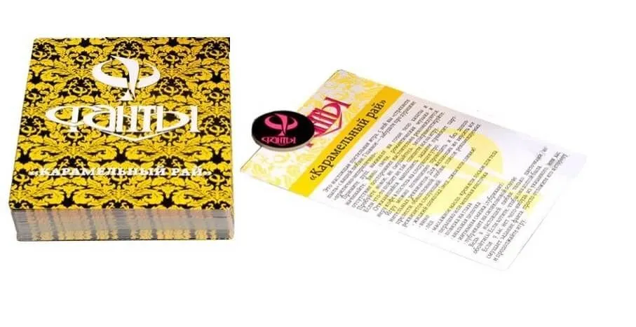 Эротическая настольная игра для взрослых "Карамельный рай" - это фанты для семейных пар, которые хотят добавить страсти в свою сексуальную жизнь! Правила игры очень просты: выбираете фанты, выполняете все, что они рекомендуют. Всего есть 4 уровня игры, которые различаются по цветам карточек - от простого белого до раскованного красного.