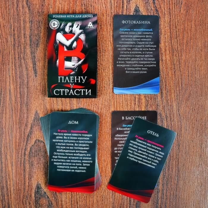 Ролевая игра для двоих "В плену у страсти страсти" содержит в себе 30 сценариев, каждый из которых сможет подарить Вам новые ощущения и незабываемое удовольствие. Оба партнера смогут примерить на себя различные роли и оказаться в самых неожиданных местах для занятий любовью. Это позволит Вам не только воплотить в жизнь все свои самые сокровенные сексуальные фантазии, но и лучше узнать желания своей второй половинки. Пробуйте новые позы и экспериментируйте, а также не бойтесь воплощать свои желания в жизнь!