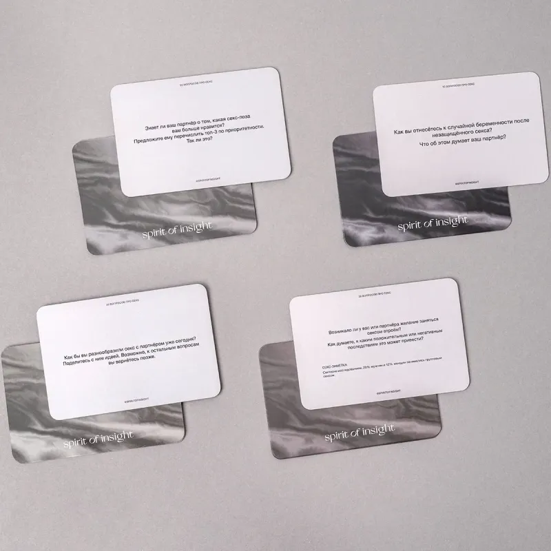 - Некоторые карты содержат элементы игры, подсказки, рекомендации, а также интересные факты, которые помогут расслабиться и довериться друг другу.