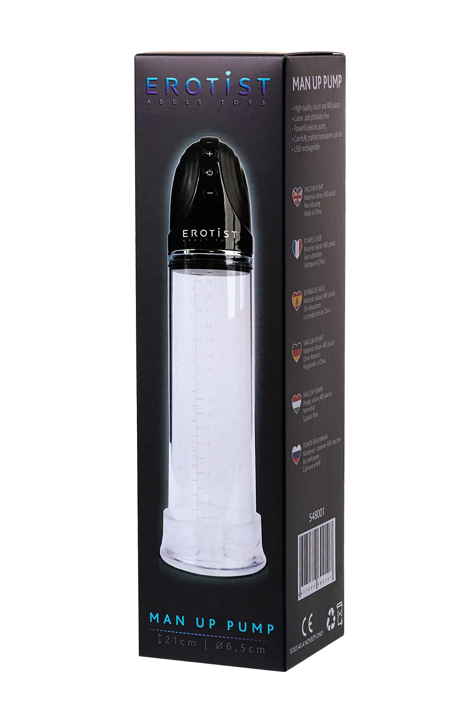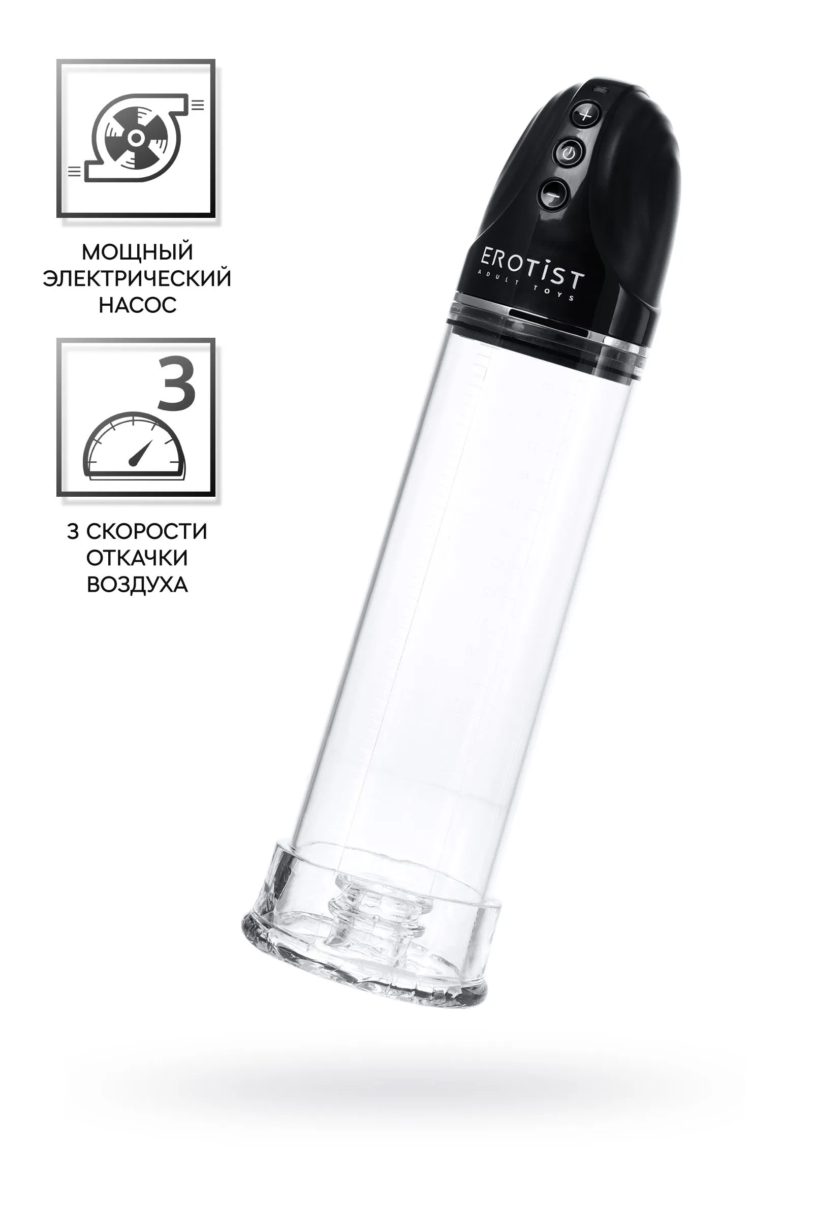 Массажер для мужчин, которые стремятся к победам Помпа повышает качество эрекции и стабилизирует потенцию, улучшает кровообращение, тонус сосудов и эластичность тканей пениса. При регулярных тренировках увеличивает размер полового члена. Кратковременный результат заметен после первого применения. Помпа оснащена мощным электрическим насосом, который в считанные мгновения создает внутри колбы разрежение, оптимальное для тренировки. Бесшумная работа мотора не отвлекает от процесса тренировки. Мощный насос увеличивает результативность занятий. 3 скорости откачки воздуха позволяют выбрать наиболее комфортный режим. Высокое качество акрила и эластомера делает применение изделия приятным и безопасным. Зарядка от USB помогает всегда оставаться в строю. Отсутствие сложных элементов позволяет легко разбирать помпу для чистки.