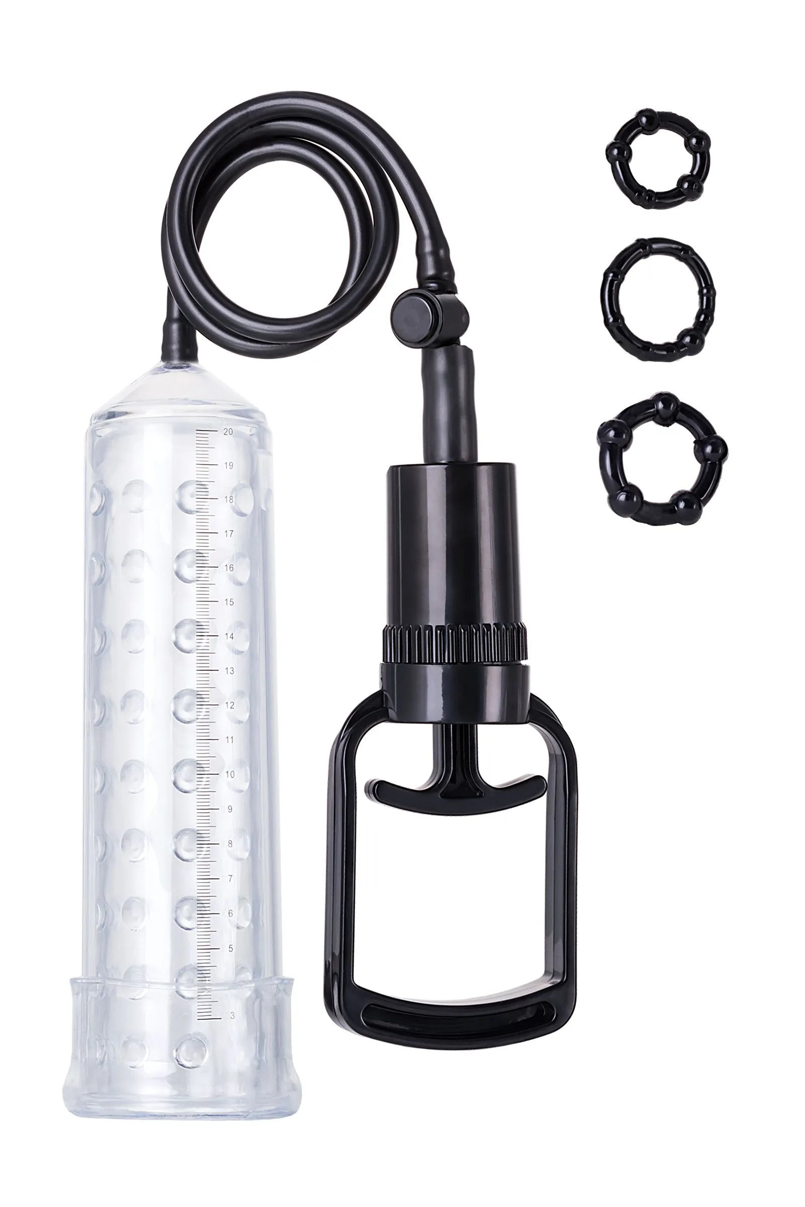 A-Toys Vacuum pump — серия помп, созданная для мужчин, которые стремятся к новым победам и точно знают чего хотя. Регулярное применение помп Atoys способствует увеличению размеров полового члена и усиливает эрекцию. Высокое качество материалов, используемых при производстве помпы, сделают применение изделия приятным и безопасным. Помпа оснащена мощным насосом. Кроме того, отличительной особенностью данной помпы является съемная мягкой вставка с рельефом в виде шариков, что позволяет дополнительно массировать пенис. Мин. диаметр 5, макс.диаметр 5,6