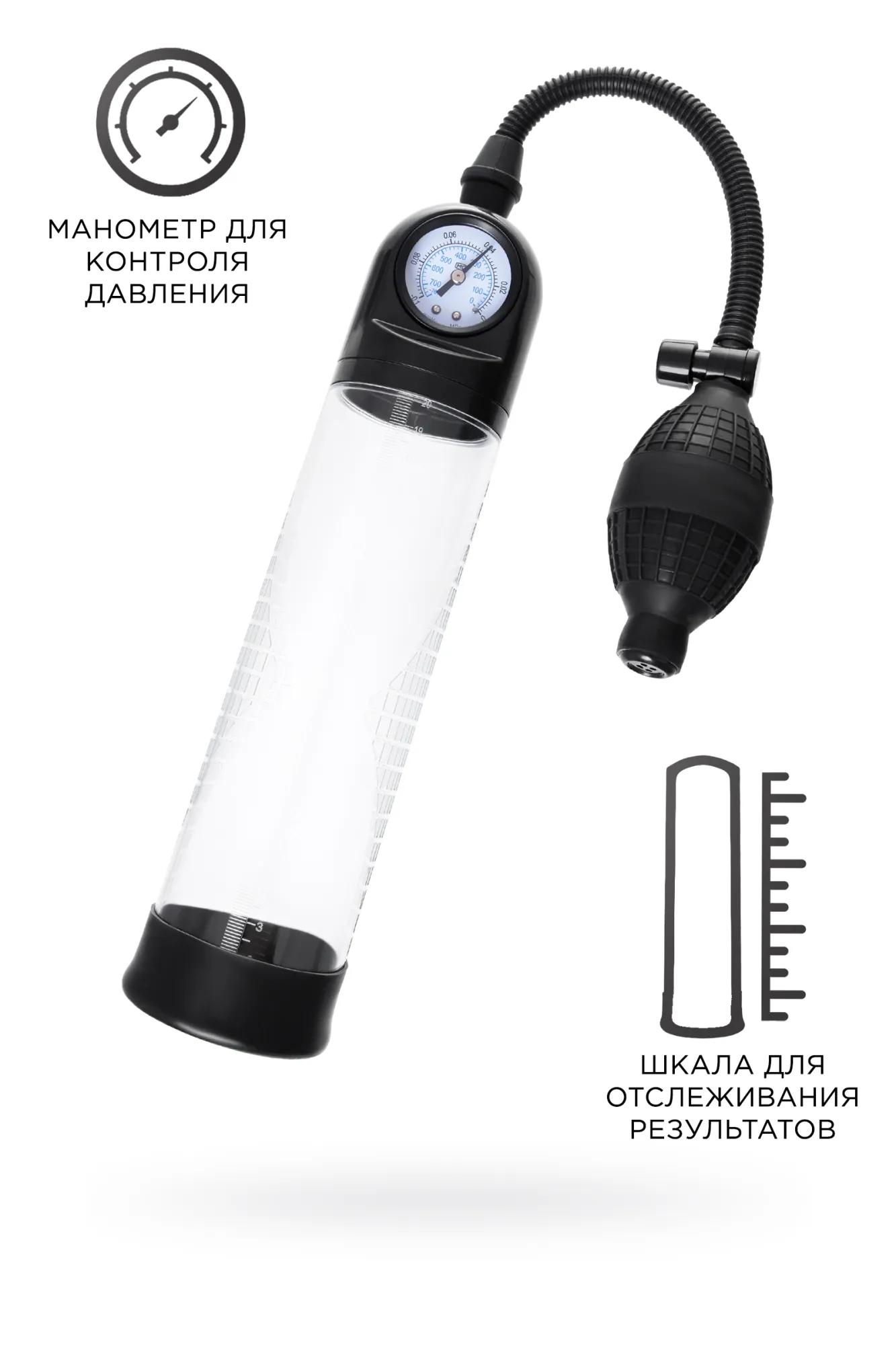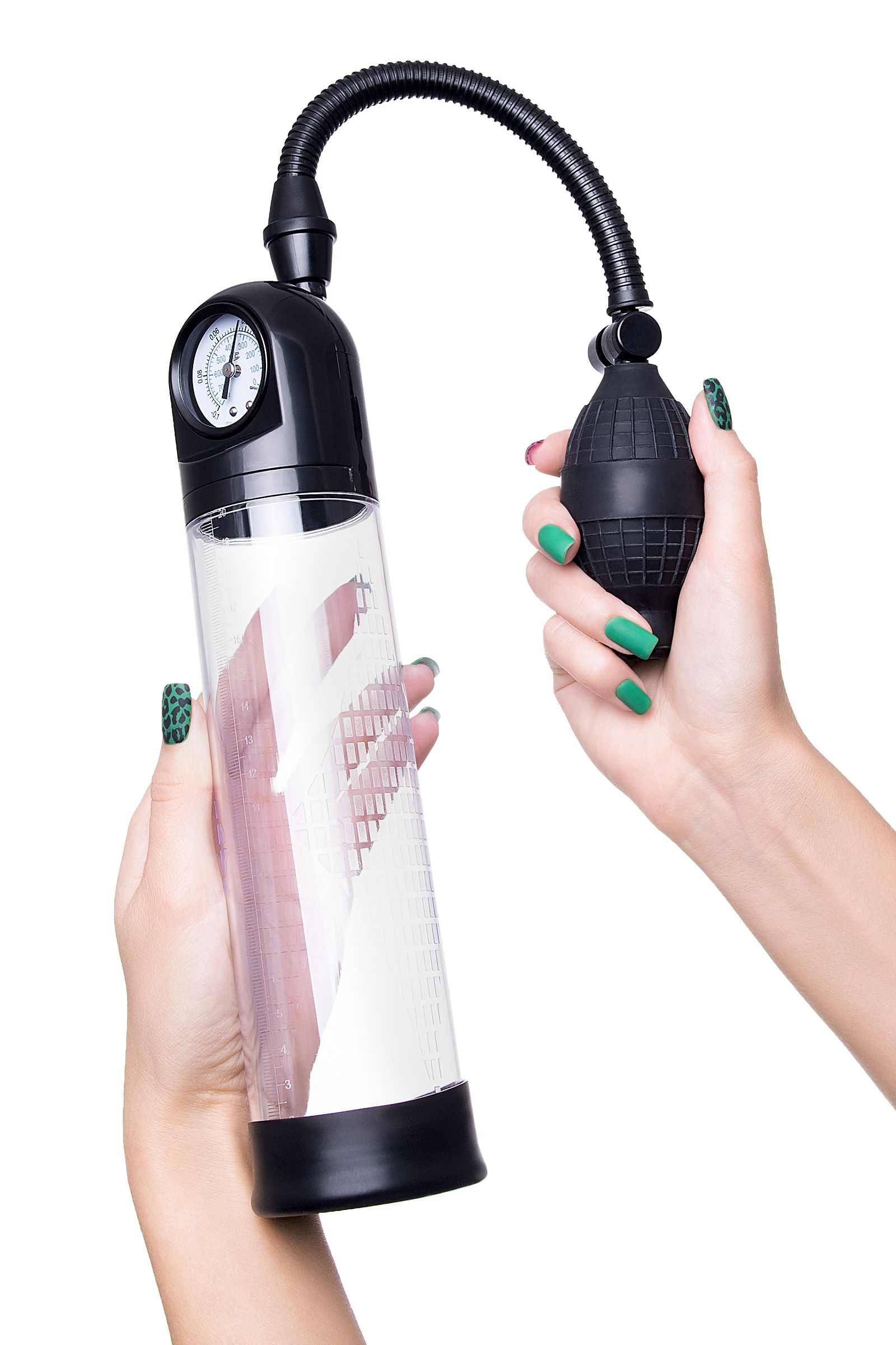 Гарант сексуального могущества для мужчины не только крепкая и надежная эрекция, но и внушительный размер орудия. Для тех, кто стремится достичь впечатляющих результатов в области увеличения размеров пениса, рекомендуется механическая помпа Roald от Sexus® Men. С помпой Roald серии Sexus® Men Training легко управлять своими тренировками по пенбилдингу, усиливать эрекцию и получать новые ощущения от полового акта. Для тренировки, а также чтобы подготовить себя к длительному и яркому сексу, вставьте свой пенис в колбу и откачайте воздух с помощью груши. Благодаря отрицательному давлению увеличивается приток крови к половому члену, за уровнем давления удобно следить с помощью встроенного манометра. Прозрачный ABS-пластик позволяет наблюдать как пенис набирает силу и увеличивается в размере. А измерительная шкала позволит отслеживать результаты прямо в процессе. Для достижения ощутимых результатов рекомендуются систематические занятия по программе эффективного тренинга, которая входит в комплект. Регулярное использование вакуумной помпы Roald от Sexus® Men позволяет: последовательно увеличить длину и диаметр полового члена, делая его более внушительным сделать эрекцию более стабильной, крепкой и продолжительной повысить сексуальную выносливость и половое влечение поднять уверенность в своих возможностях и совершать новые сексуальные подвиги понизить вероятность образований аномальных фиброзных тканей Помпа Roald комплектуется грушей для разрежения воздуха, механическим манометром, клапаном для быстрого сброса давления, и программой для эффективных тренировок. Гофрированный шланг, силиконовая насадка, качественные материалы – все вместе это делает использование помпы Roald не только безопасным, но и комфортным!