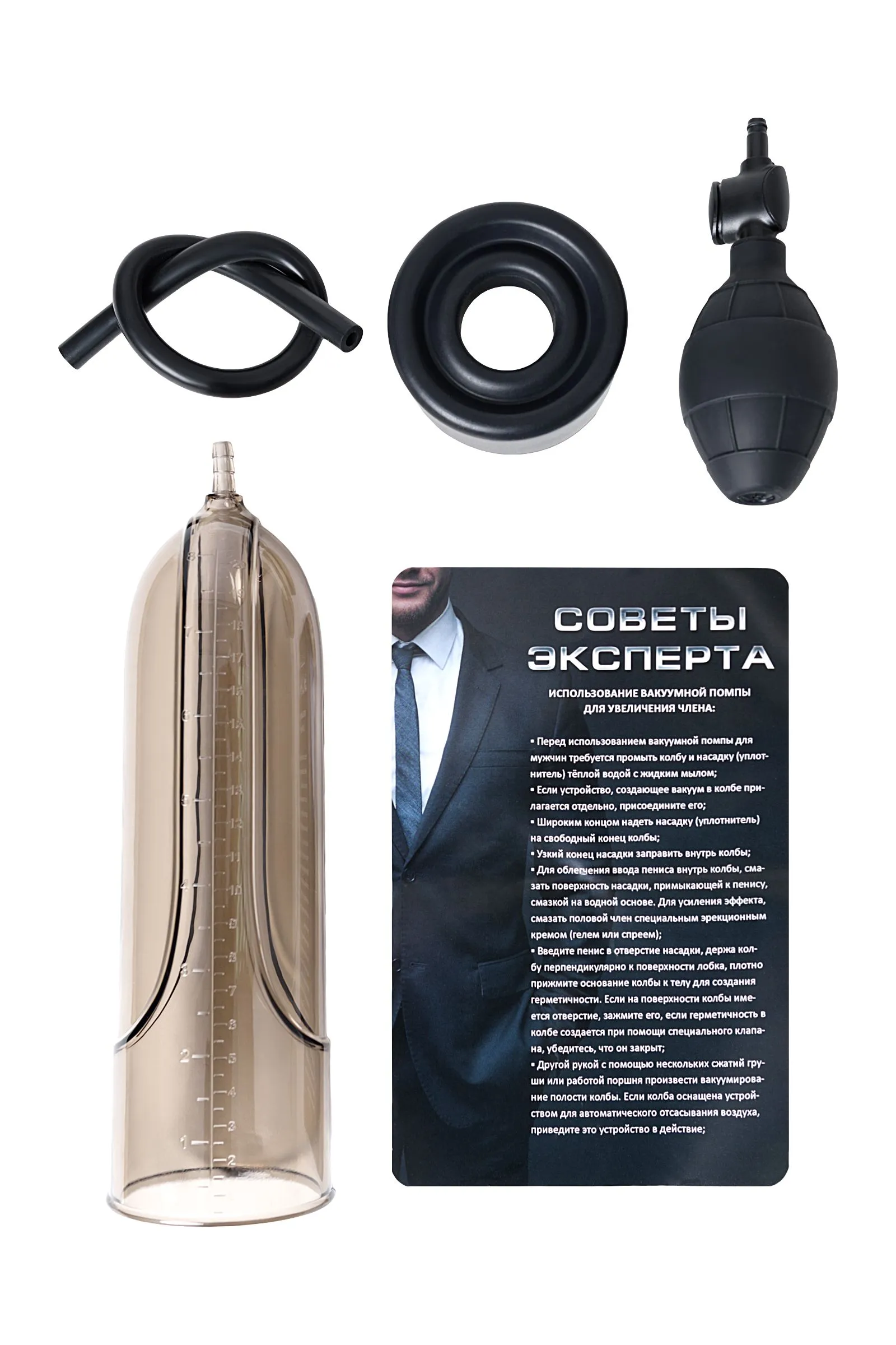 Эта вакуумная помпа с удобной грушей для откачки воздуха и программой эффективных тренировок — отличный массажёр для сосудистых и нервных окончаний пениса. Повышается эластичность тканей, улучшается тонус сосудов, усиливается кровообращение и обмен веществ. Применение этого приспособления влияет даже на работу предстательной железы. Всё это непосредственно сказывается на мужской «силе». Но не были бы вакуумные помпы настолько популярны, если бы давали лишь силу. Увеличение члена им также по зубам. Правда, стараться здесь придётся уже не только помпе. Только регулярное использование помпы приводит к реальному увеличению, в противном случае эффект будет лишь временным. Чтобы сохранить эрекцию, достигнутую с помощью помпы, используйте после помпирования кольца Sexus Men ELEPHANT RINGS.