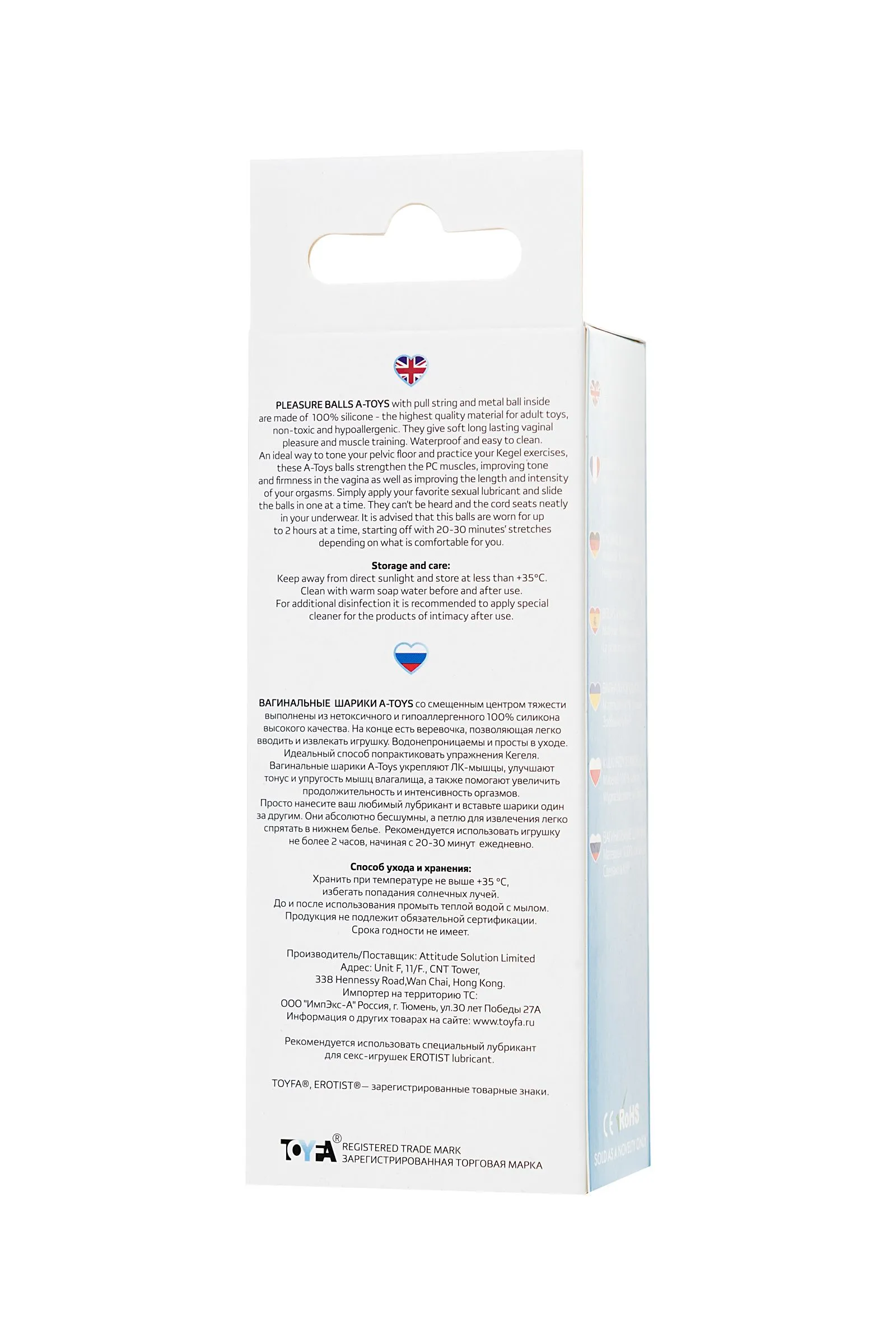 Вагинальные шарики A-Toys Trot со смещенным центром тяжести выполнены из нетоксичного и гипоаллергенного 100% силикона высокого качества. На конце есть веревочка, позволяющая легко вводить и извлекать игрушку. Водонепроницаемы и просты в уходе. Идеальный способ попрактиковать упражнения Кегеля. Вагинальные шарики А-Toys укрепляют ЛК-мышцы, улучшают тонус и упругость мышц влагалища, а также помогают увеличить продолжительность и интенсивность оргазмов. Просто нанесите ваш любимый лубрикант и вставьте шарики один за другим. Они абсолютно бесшумны, а петлю для извлечения легко спрятать в нижнем белье. Рекомендуется использовать игрушку не более 2 часов, начиная с 20-30 минут ежедневно.