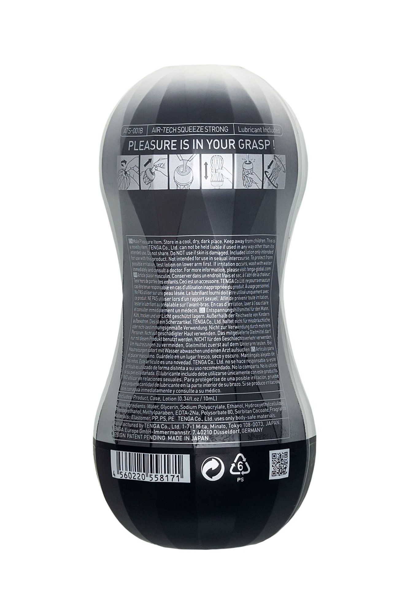 Мы создали новую идеальную игрушку для невероятного наслаждения, совместив камеры Air Cushion из серии Air Tech с новым податливым корпусом — теперь Вы можете контролировать интенсивность удовольствия просто силой захвата! Абсолютно новый корпус удобно и надежно лежит в руке, предоставляя при этом возможности для разнообразного и мощного наслаждения. Новая, специально разработанная для этого модель точки входа также доставляет невообразимое удовольствие на всём протяжении акта. Насладитесь гибким и подстраивающимся под Ваши нужды инструментом стимуляции — новым Tenga Air Tech Squeeze!