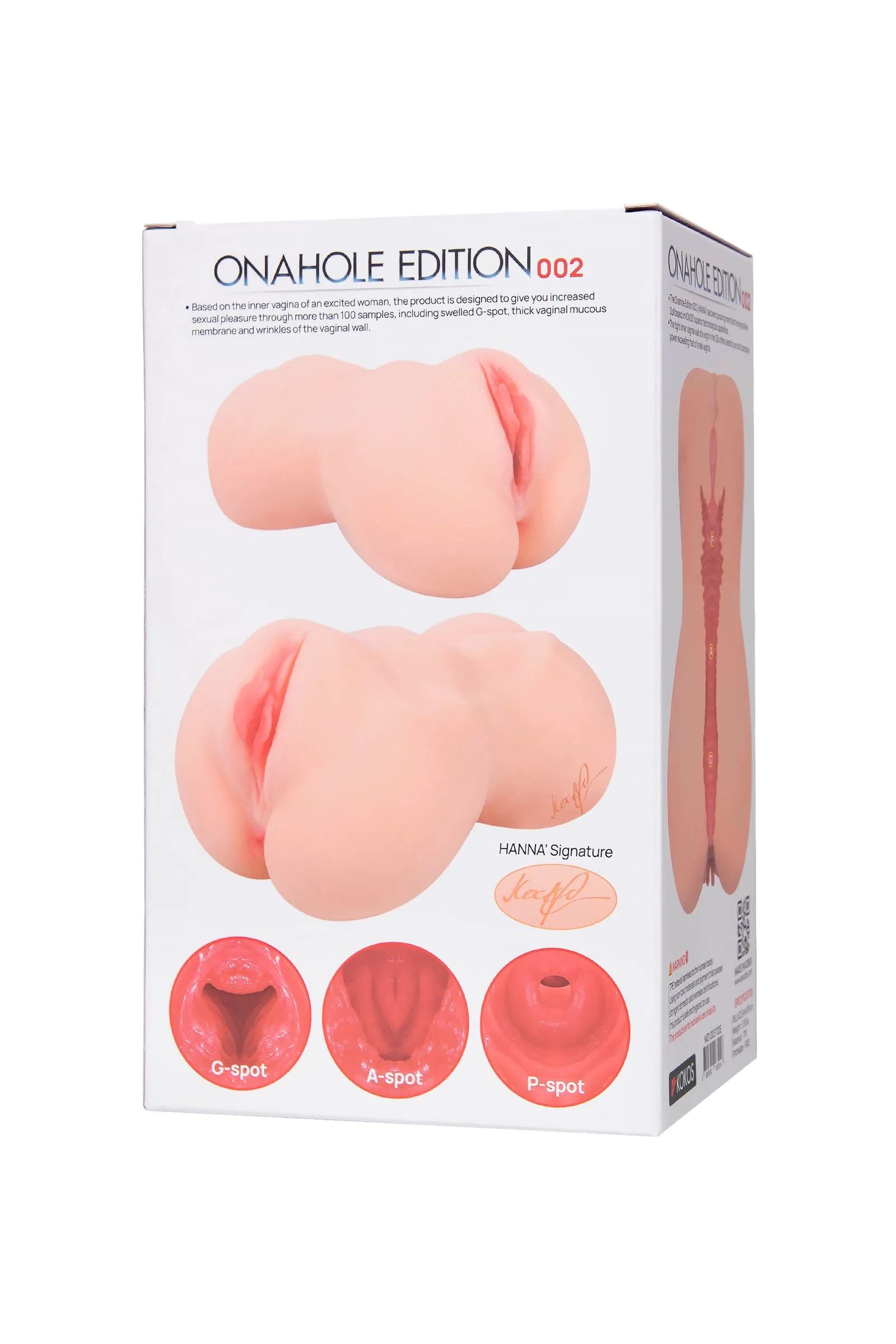 Мастурбатор Hanna из новой серии EDITION от KOKOS превосходит ожидания по реалистичности исполнения благодаря кропотливой работе по снятию слепка интимных зон с реальной модели. Детальная проработка каждой интимной складочки, вплоть до мельчайших пор, вызывает желание обладать этой игрушкой снова и снова. Двойной слой дарит уникальные ощущения: первый слой мягкий и нежный – возбуждает и пробуждает желание, а второй – более плотный и упругий, дарит незабываемое впечатление от каждого движения. Серия сужений во внутренних каналах гарантирует особо тесный контакт. Внутренний рельеф передает максимальную чувствительность к глубине, толщине и реалистичной шейки матки. Плотная внутренняя стенка влагалища 20-летней девственницы обладает эластичностью и мягкостью, превосходящую настоящее влагалище. Точка Р – высшая эрогенная зона, имитирующая вход в матку, точки А и G – эрогенные зоны переднего свода, набухающие, когда женщина находится в сексуальном возбуждении. Детальная проработка эрогенных зон имитирует влагалище возбужденной женщины, чтобы доставить наивысшее сексуальное удовольствие. Hanna – совсем как настоящая, только лучше. Специальный колпачок обеспечивает мощную герметичность и поглощающее вакуумное ощущение при погружении в мастурбатор. Оцените разницу в ощущениях при погружении с закрытым или открытым верхним клапаном. Кроме того, клапан позволяет очищать игрушку легко и просто. Уникальный запатентованный материал, как и все высококачественные материалы линейки KOKOS премиум, гигиеничен и не оказывает токсичного воздействия на организм человека. Гибкий корпус позволяет самостоятельно выбирать степень удовольствия — сдавливая и расслабляя мастурбатор, вы можете ускорять или отдалять финал. Hanna не боится воды: чтобы испытать новые ощущения, возьмите игрушку с собой ванну или душ. Рекомендуется использовать лубриканты на водной основе. Тщательно очищайте мастурбатор после применения, обрабатывайте его пудрой и храните в прохладном темном месте в индивидуальной упаковке.