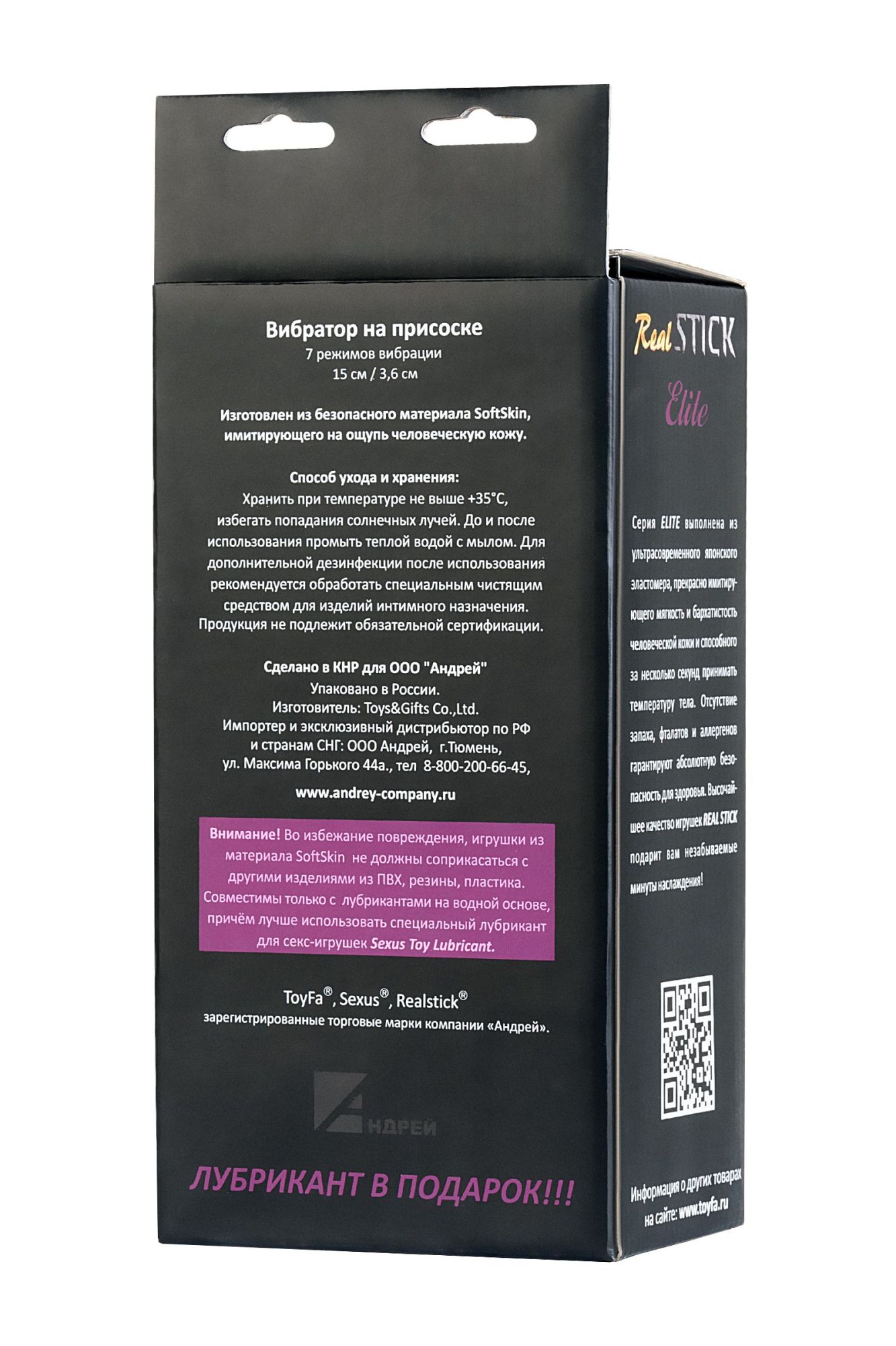 Материал, который используется при производстве этого фаллоса, придаёт ему бархатистую нежность и необходимую гибкость, а также помогает быстро принимать температуру тела. Благодаря этому ощущения от игр с вибратором не отличаются от секса с реальным партнёром. Даже позами этот чудо-фаллос даёт возможность насладиться любыми, ведь у него имеется присоска для крепления на твёрдой поверхности. Конечно, внешнее 100-процентное сходство с настоящим эрегированным членом также добавляет процессу нужное настроение. Да, только пенис мужчины способен сравниться с дополнительной стимуляцией мягким рельефом игрушки. А вот 7 программ вибрации не заменит даже самый страстный любовник. Волнующе нежный, мощный и сильный или умеренный средний режим — интимные развлечения заиграют по-новому с этим вибратором! Допускается, что некоторые экземпляры могут оставлять следы краски, поэтому перед первым применением необходимо очень тщательно помыть игрушку водой с мылом, особое внимание уделяя головке. Материал и краска абсолютно безопасны для человеческого организма. Приятный бонус внутри упаковки - бесплатный лубрикант!