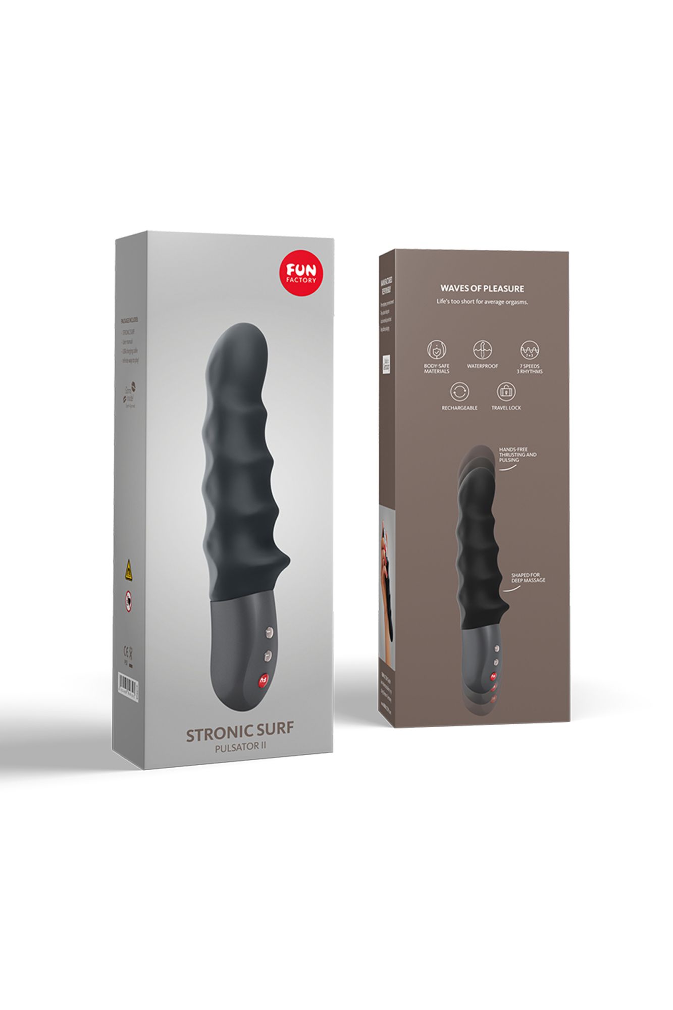представляем FUNтастическую новинку STRONIC SURF! Рельефная форма для еще более FUNтастической стимуляции! Новый вариант нашего мирового бестселлера *Для Экстра-FUN: соло или вдвоем Классический размер Тонкий, мощный, рельефный Пульсирующие толчки, без помощи рук 7 режимов и 3 интенсивности стимуляции Блокировка кнопок для путешествий Функция памяти Светодиодный индикатор процесса зарядки Индикатор уровня заряда батареи 100% медицинский силикон, не пористый, гипоаллергенный Простое, интуитивно понятное управление До двух часов игры 6 – 8 часов время зарядки Разработан и изготовлен вручную в Германии 100% водонепроницаемый