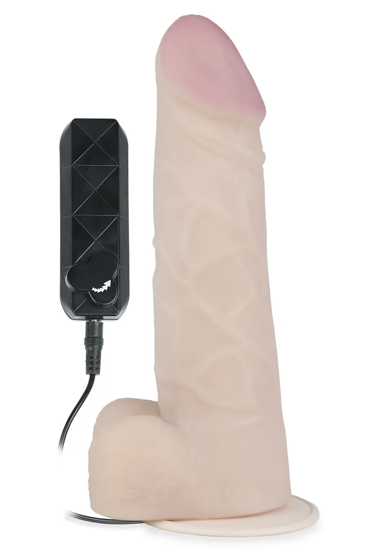 Реалистичный вибратор телесного цвета с мошонкой на присоске. Имеет с ярко выраженную головку и вены. Необычайно приятный, рельефный, мягкий на ощупь, выполнен из «Киберкожи». Плавная регулировка скорости вибрации на дистанционном пульте. Работает от 2-х батареек типа АА (нет в комплекте). Общая длина – 28,5 см, рабочая длина – 22 см, максимальный диаметр – 5,5 см. Упакован в пластиковую прозрачную коробку.