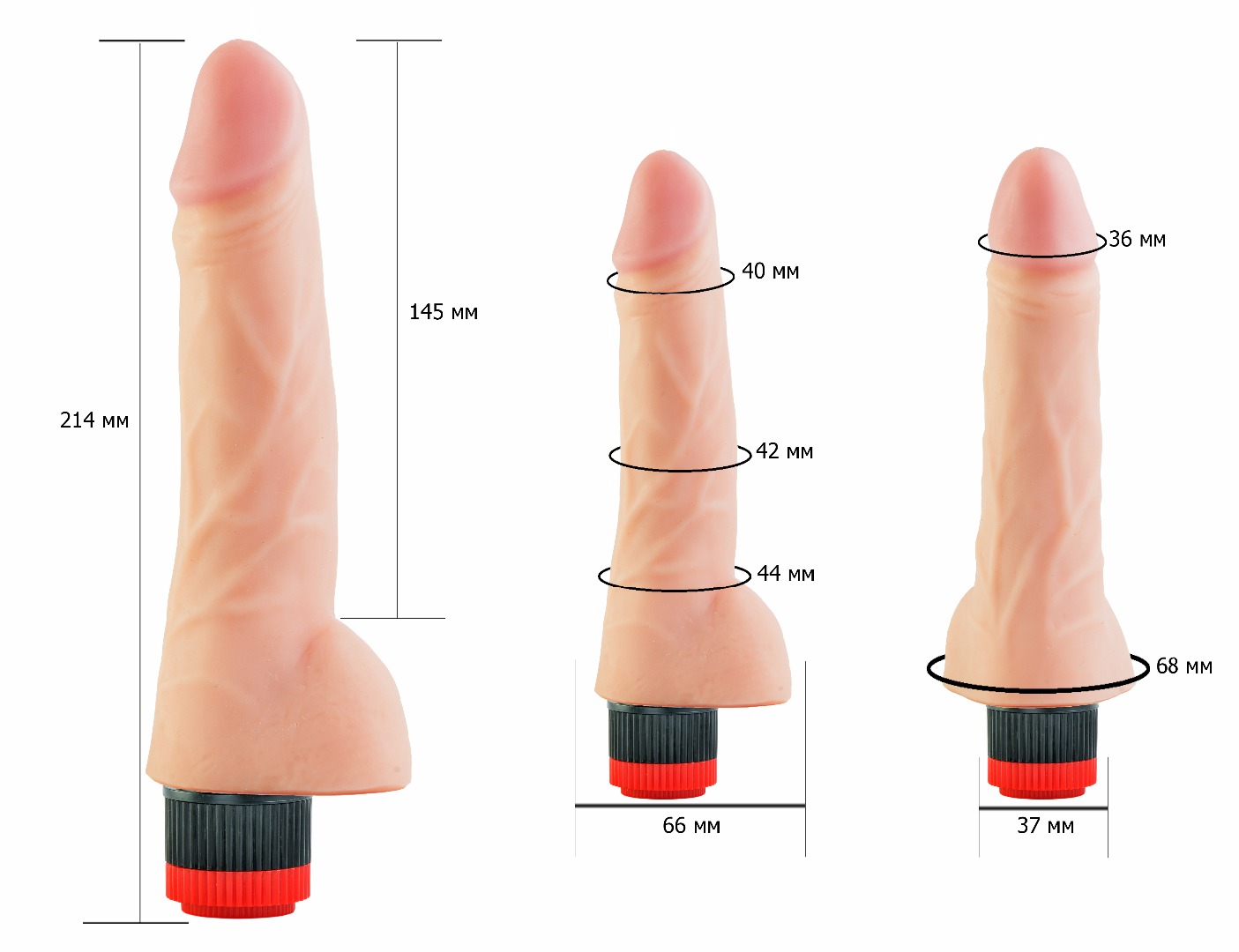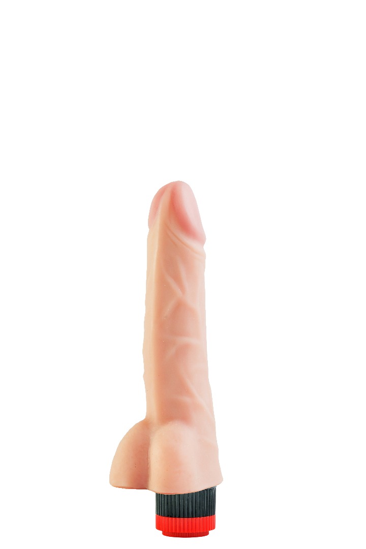 Вибромассажёр телесного цвета. Имеет форму члена с ярко-выраженной головкой. Необычайно приятный, рельефный, выполненный из «Неоскин» , передающий эффект мягкой реалистичной текстуры кожи, не имеет швов. Виброэлемент расположен по всей длине изделия. Степень вибрации регулируется при помощи кнопки, расположенной в основании. Общая длина – 22 см, рабочая длина- 17,3 см, максимальный диаметр- 3,5 см. Работает от 2АА батареек (нет в комплекте). Упаковка: картонная коробка с принтом.