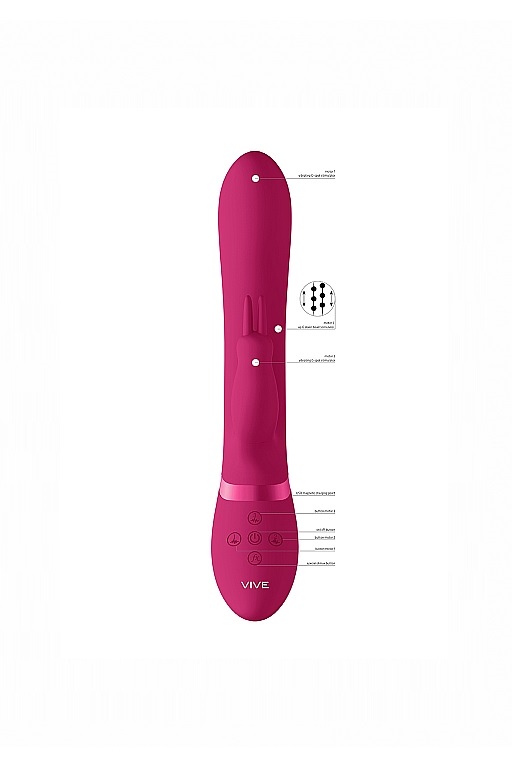 Вибромассажер подходит для вагинально-клиторальной стимуляции. Функция «мгновенный оргазм» дает возможность получения быстрого и/или очень сильного удовольствия. За счет вращающихся бусин идеален для стимуляции влагалища, в сочетании с клиторальной стимуляцией.