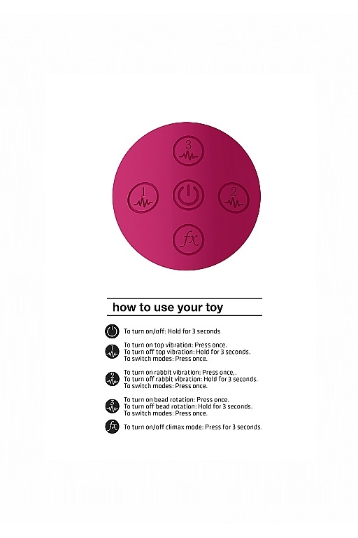 Функциональность: 10 функций вибрации в каждом из отростков, 10 функций ротации бусин и функция «мгновенный оргазм»