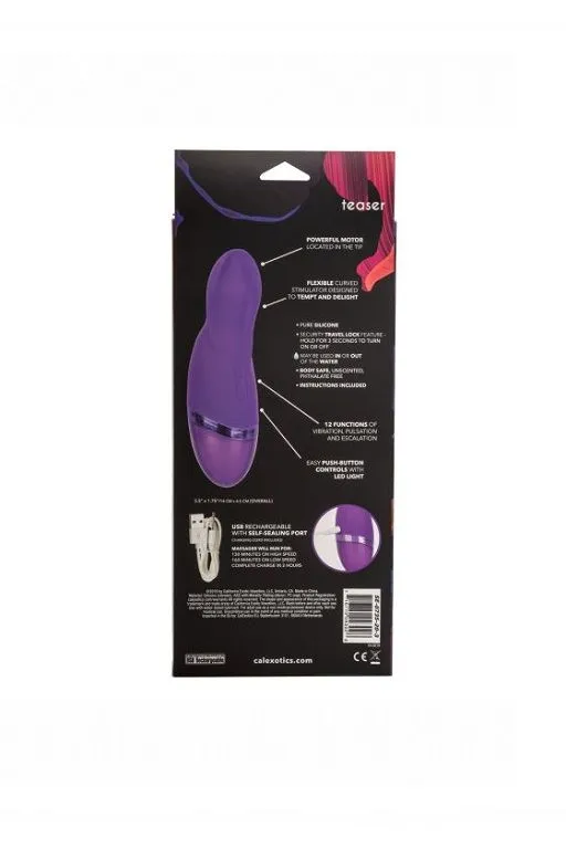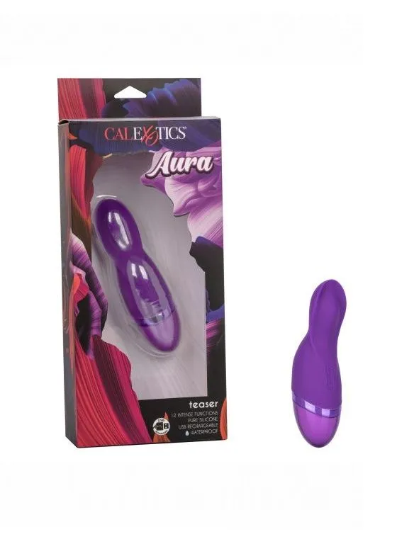 Aura Teaser – перезаряжаемый, ультра гибкий, миниатюрный вибромассажер с мерцающим кончиком. Мощный мотор обеспечивает 12 интенсивных функций вибрации, пульсации и эскалации.