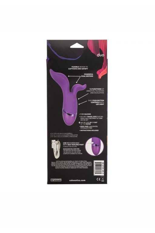 Aura Duo – перезаряжаемый ультра гибкий двойной вибромассажер. Мощный мотор обеспечивает 12 интенсивных функций вибрации, пульсации и эскалации на каждом из отростков.
