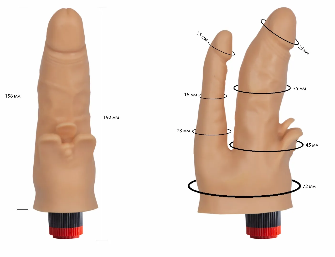 Описание: вибромассажер-реалистик в ламинате 114900ru Вибромассажер-реалистик 114900 – это восхитительная интим-игрушка, которая позволит девушке получать регулярное удовольствие от двойного проникновения. Он имеет 2 крупных отростка, предназначенных для ласки вагинального и анального отверстия и один маленький – для клиторальной стимуляции. Интим-игрушка выполнена в виде двух реалистичных пенисов с ярко выраженными головками и крупной мошонкой, соединяющей фаллосы. Вибромассажер-реалистик можно установить и закрепить на любой ровной поверхности при помощи присоски. Характеристики вибромассажер-реалистик в ламинате 114900: цвет – телесный, материал – поливинилхлорид, длина – 17 см, диаметр основного фаллоса – 3,2 см, диаметр анального отростка – 2,1 см, производитель – Биоклон (Россия).