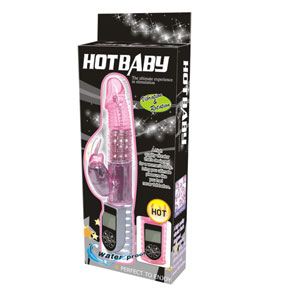 Вибратор Хай-тек с функцией вращения ствола и клиторальным стимулятором в виде кролика. Режимы вибрациии и режимы вращения можно совмещать. Мягкий, имеет ярко выраженную головку и ребристость. Материал изготовления- ТРЕ (гель). Имеет 9 режимов вибрации и ротации. Работает от 4-х батареек типа ААА (нет в комплекте). Общая длина 26,5 см, рабочая длина 14 см, максимальный диаметр 4 см, длина клиторального стимулятора 6 см, диаметр 3,5 см. Упаковка- прозрачный пластик.