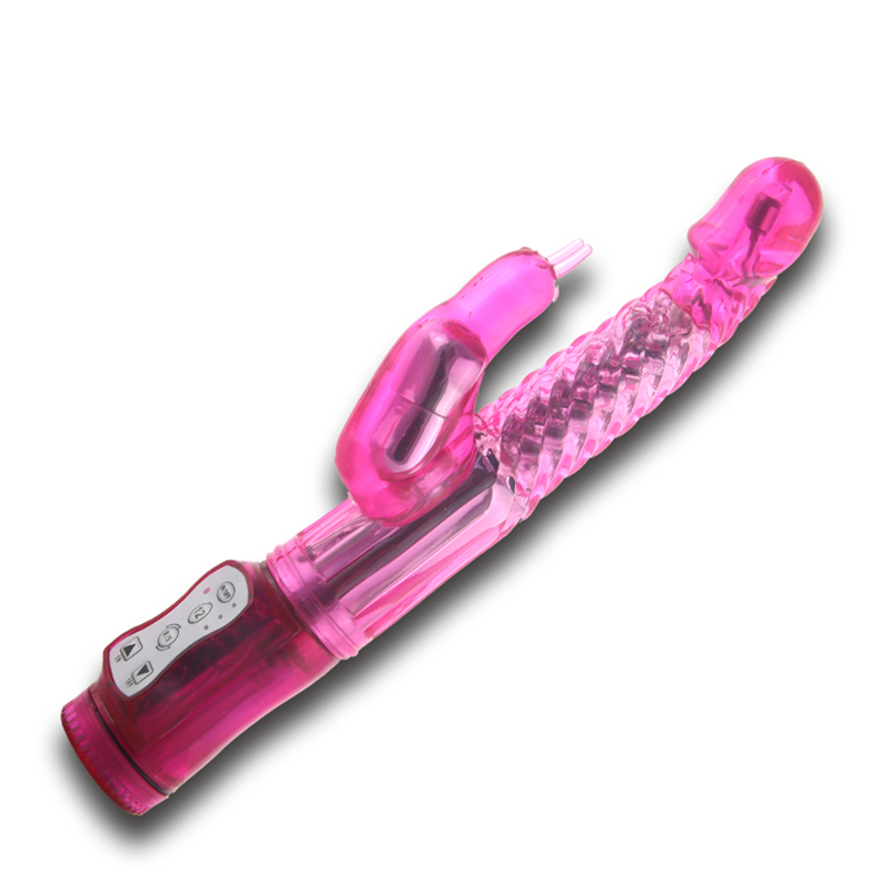 Вибромассажер с функцией вращения ствола и мощным клиторальным стимулятором в виде зайчика. Имеет 12 режимов вибрациии, 12 режимов вращения. Данные режимы можно совмещать. Мягкий, имеет не пористую структуру. Материал изготовления- ТРЕ ( гель). Работает от 3-х батареек типа ААА (нет в комплекте). Общая длина 25 см, рабочая длина 11,5 см, максимальный диаметр 2,5 см, длина стимулятора 6 см, диаметр 2,5 см. Упаковка- коробка с принтом.