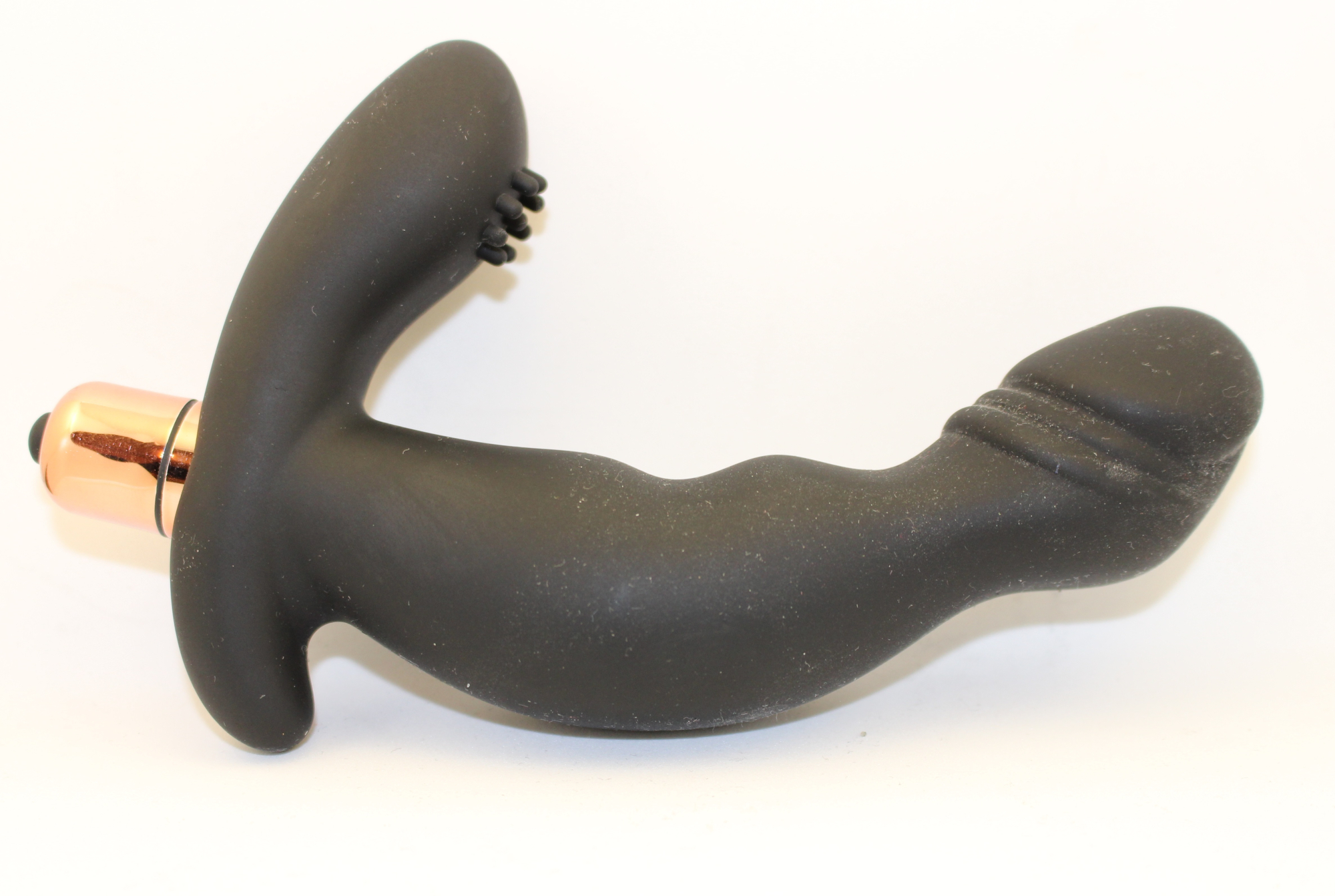 Вибростимулятор черного цвета с загнутым кончиком для наилучшей стимуляции. Подходит как для анального, так и вагинального проникновения. Имеет разнообразную функцию вибрации для незабываемого удовольствия. Характеристика: работает от 1ААА батарейки (есть в комплекте), водонепроницаемый. Общая длина- 15 см, рабочая длина- 12 см, максимальный диаметр-3 см. Стильная картонная упаковка.
