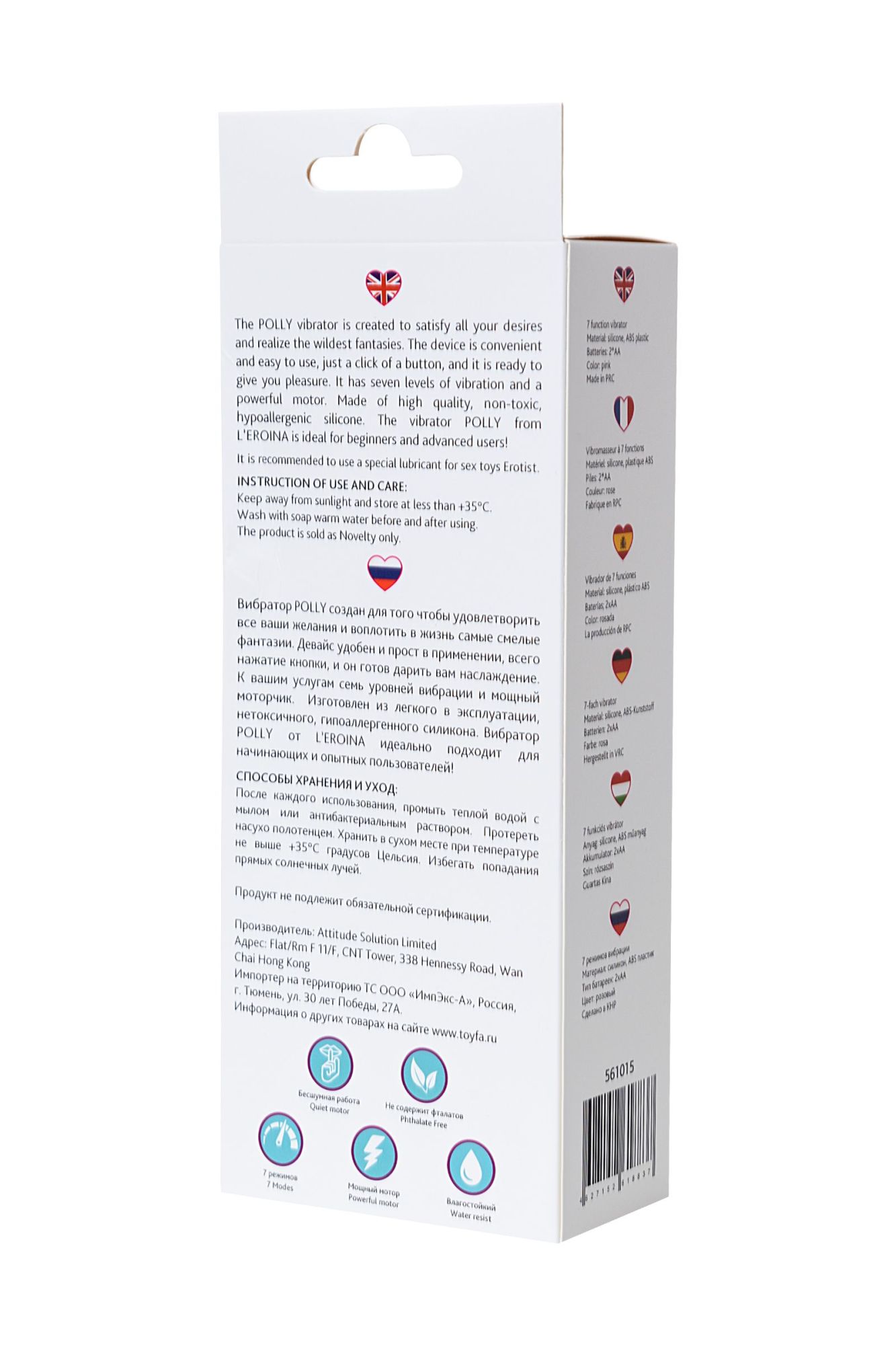 Вибратор POLLY создан для того, чтобы удовлетворить все ваши желания и воплотить в жизнь самые смелые фантазии. Девайс удобен и прост в применении, всего нажатие кнопки, и он готов дарить вам наслаждение. К вашим услугам семь уровней вибрации и мощный моторчик. Изготовлен из легкого в эксплуатации, нетоксичного, гипоаллергенного силикона. Вибратор POLLY от L’EROINA идеально подходит для начинающих и опытных пользователей!