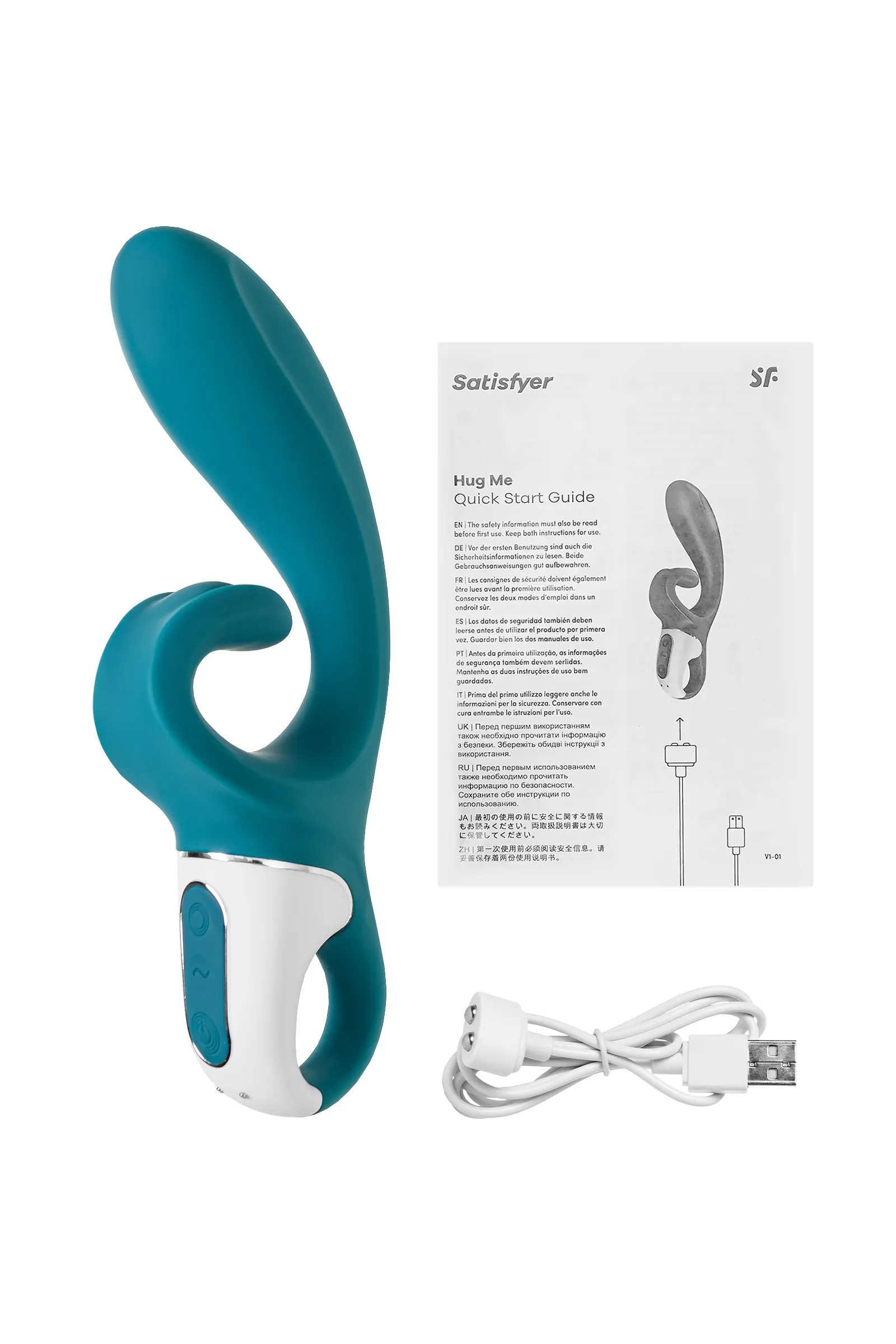Вибратор-кролик Hug me от Satisfyer создан дарить глубокую стимуляцию. Игрушка обладает двумя отростками – вагинальным и клиторальным, которые вместе создают ощущение крепких объятий. Он будто обнимает клиторальную зону изнутри и снаружи, благодаря восхитительной стимуляции клитора и зоны G. 2 мощных мотора пробуждают волны наслаждения, стимулируя вибрацией самые чувствительные области. Гибкая погружная часть диаметром 4,2 см дарит ощущение заполненности и прицельно стимулирует зону G, подстраиваясь под анатомию индивидуально. Клиторальный отросток в форме лепестка, скрученного в спираль, обнимает клитор и пружинит при каждом движении. Дополнительная выпуклость на отростке максимально плотно, но при этом нежно прилегает к клитору, одновременно передавая вибрацию и на половые губы. Ручка-кольцо позволит уверенно держать игрушку в самых разнообразных позициях и при любой интенсивности движений. Игрушка имеет 12 паттернов вибрации на каждом моторе, а приложение Satisfyer Connect, доступное на Android и iOS, существенно расширяет возможности предустановленных режимов. Вы можете создавать свои собственные уникальные режимы стимуляции. Девайс поддерживает режим преобразования звуков в вибрацию, поэтому он способен вибрировать даже в такт любимой музыке. Но и это не все – приложение для смартфона имеет функцию чата и даже позволяет передать управление игрушкой другому человеку дистанционно. Satisfyer Connect не имеет границ – в настоящее время поддерживается более 25 языков. Интегрированные функции чата / звонка и видеовызова гарантируют приятное интимное общение. Плавные изгибы и аккуратный рельеф обеспечивают легкое проникновение. Шелковистое силиконовое покрытие — фирменный знак Satisfyer, тактильно нежный и приятный на ощупь, он быстро адаптируется к температуре вашего тела. Чтобы получить максимум удовольствия и сохранить материал в наилучшем виде, рекомендуется пользоваться качественной смазкой на водной основе. После использования обязательно очищайте вибратор теплой водой со специальными бактерицидными спреями для интимных товаров. Особенности: 2 мощных автономных мотора Гибкий вагинальный отросток создает ощущение наполненности Изогнутый и упругий клиторальный отросток глубоко стимулирует клитор и прилегающую зону Удобная ручка-кольцо и эргономичная форма 12 режимов вибрации для каждого мотора и неограниченное количество режимов в приложении Satisfyer Connect с подключением через Bluetooth. Стильный серо-голубой цвет и мягкий, эластичный силикон без запаха, без аллергенов и вредных для здоровья веществ. Возможность использовать игрушку в ванной и душе благодаря полной водонепроницаемости (до 30 минут на глубине до 1 метра) – IPX7. Время работы 50 минут. Перезаряжаемый, магнитный USB-кабель, время зарядки 4,5 часа.