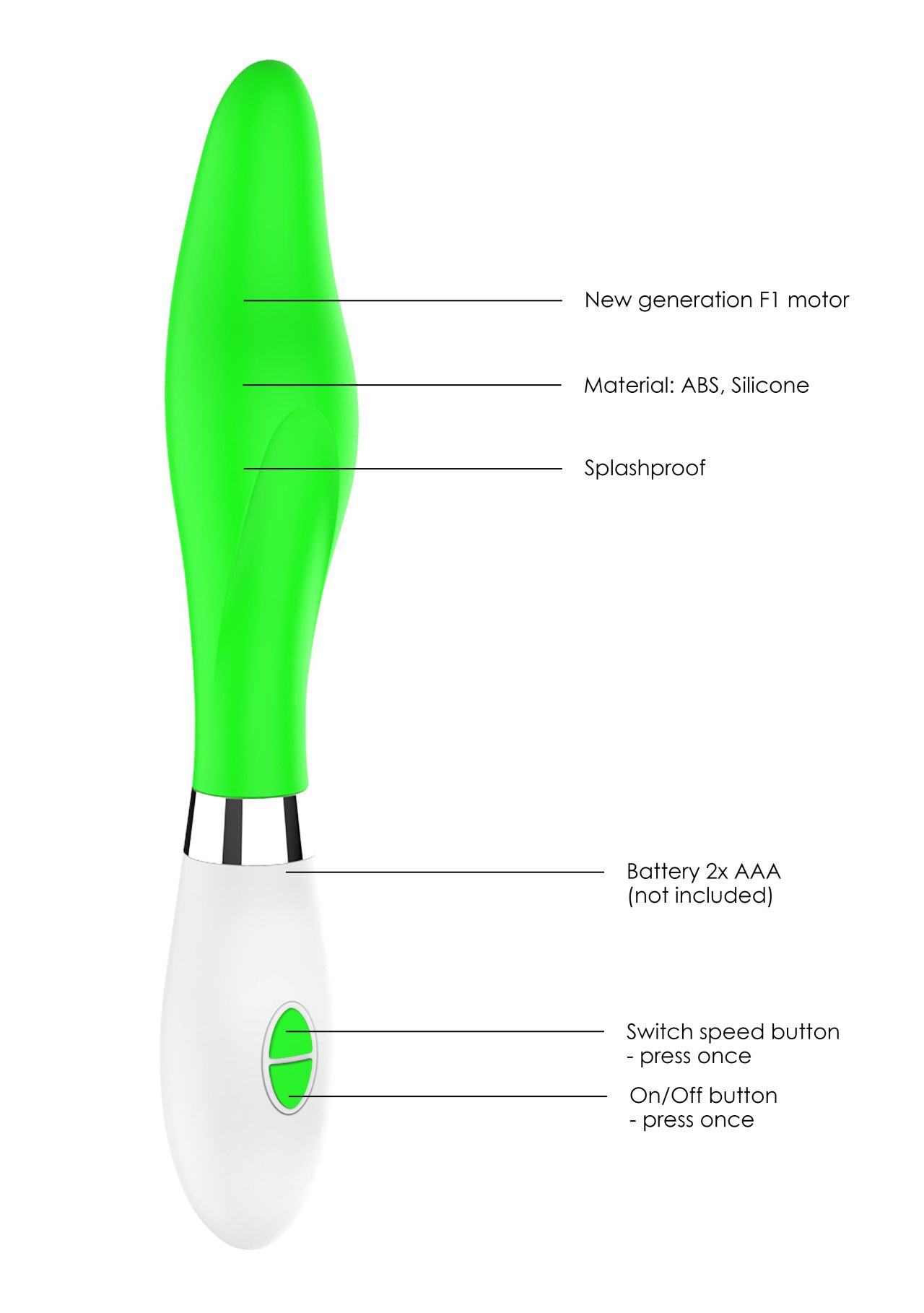 Хранение: очищать игрушку желательно до и после использования. Можно помыть в теплой воде с мылом или воспользоваться специализированным чистящим средством. Перед хранением вибромассажер необходимо хорошо просушить. Желательно хранить отдельно от других силиконовых изделий. Использовать только с лубрикантом на водной основе.