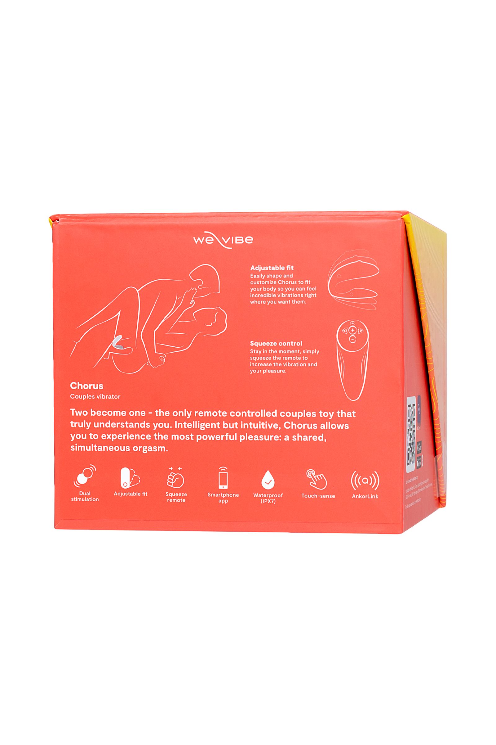 Вибратор для пар от We-Vibe с интуитивным управлением - забудьте о кнопках, просто сжимайте сенсорный пульт в ладони, чтобы увеличить силу вибрации. Chorus имеет 10 встроенных режимов и бесконечное количество настраиваемых - вы можете создать любой рисунок вибрации в приложении We-Connect и управлять вибратором с помощью смартфона. Chorus полностью водонепроницаемый, покрыт безопасным силиконом и изменит свою форму, чтобы стать удобным именно для вас.