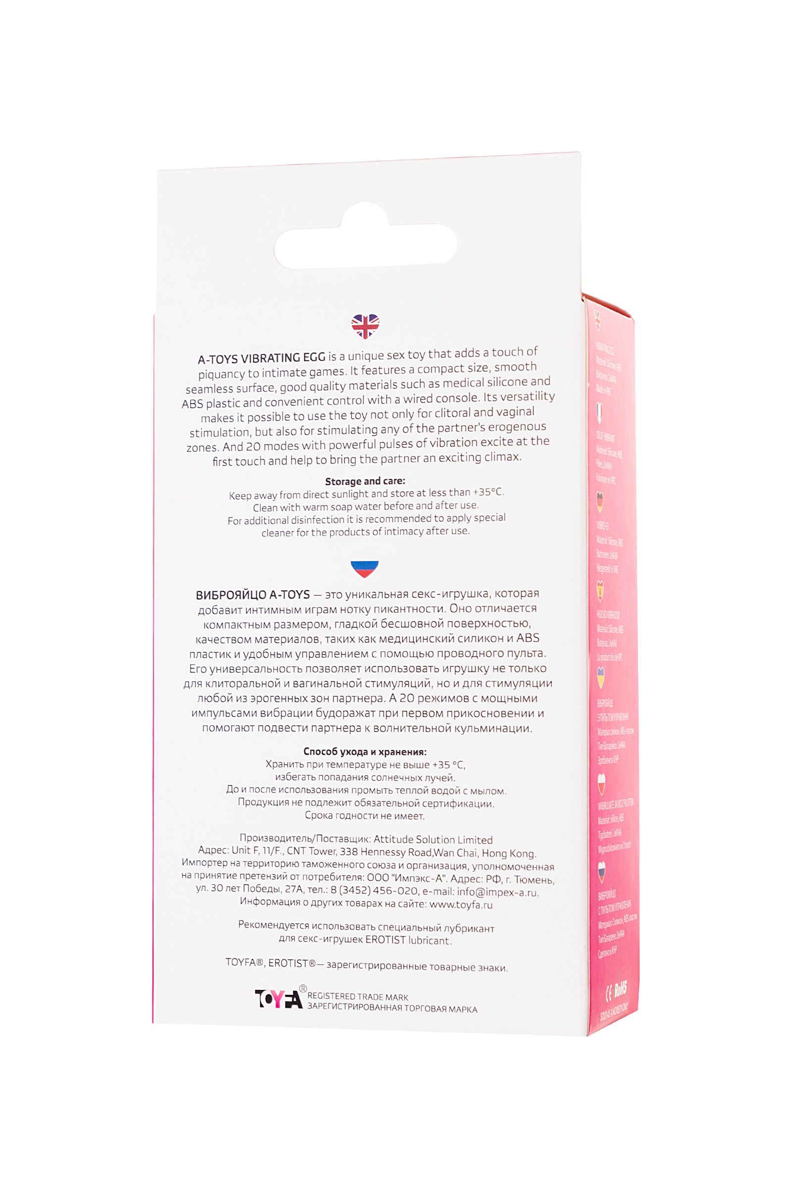 Виброяйцо A-Toys Costa — это уникальная секс-игрушка, которая добавит интимным играм нотку пикантности. Оно отличается компактным размером, гладкой бесшовной поверхностью, качеством материалов, таких как медицинский силикон и ABS пластик и удобным управлением с помощью проводного пульта. Его универсальность позволяет использовать игрушку не только для клиторальной и вагинальной стимуляций, но и для стимуляции любой из эрогенных зон партнера. А 20 режимов с мощными импульсами вибрации будоражат при первом прикосновении и помогают подвести партнера к волнительной кульминации.