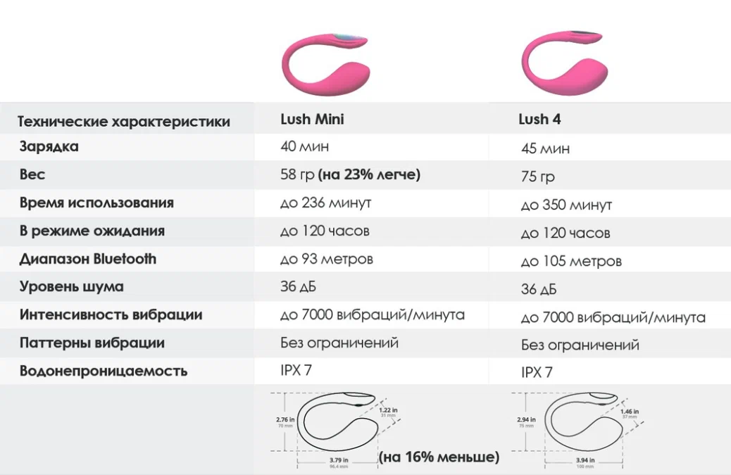 Несмотря на компактность, новое виброяйцо на 16% меньше LUSH 4, виброяйцо работает до четырёх часов без подзарядки и остаётся почти бесшумным - его легко использовать в любой обстановке. Водонепроницаемый корпус позволяет наслаждаться игрой даже в душе или ванне, а магнитная зарядка делает процесс подготовки быстрым и удобным.