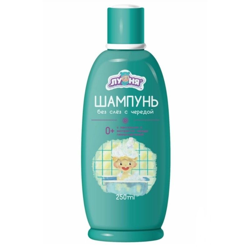 Шампунь “Луня” с чередой разработан для безопасного ухода за волосами малыша. Он не только очищает их, но и питает, делает сильнее. Экстракт череды стимулирует рост волос, препятствует шелушению кожи, способствует лёгкому расчёсыванию. Пантенол помогает очищению кожи головы от ороговевших клеток. В составе нет парабенов и красителей. При попадании в глаза шампунь не вызывает раздражения.