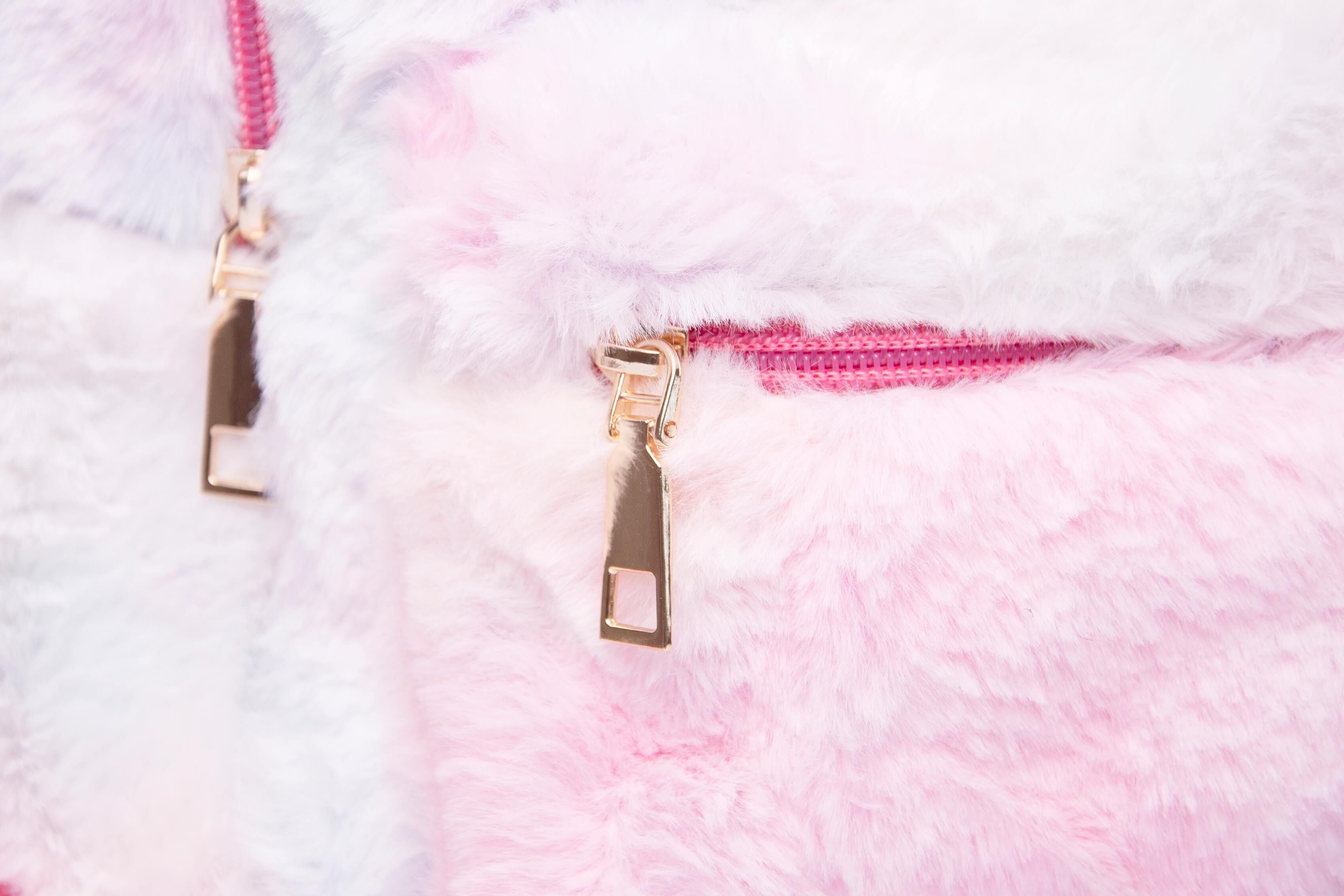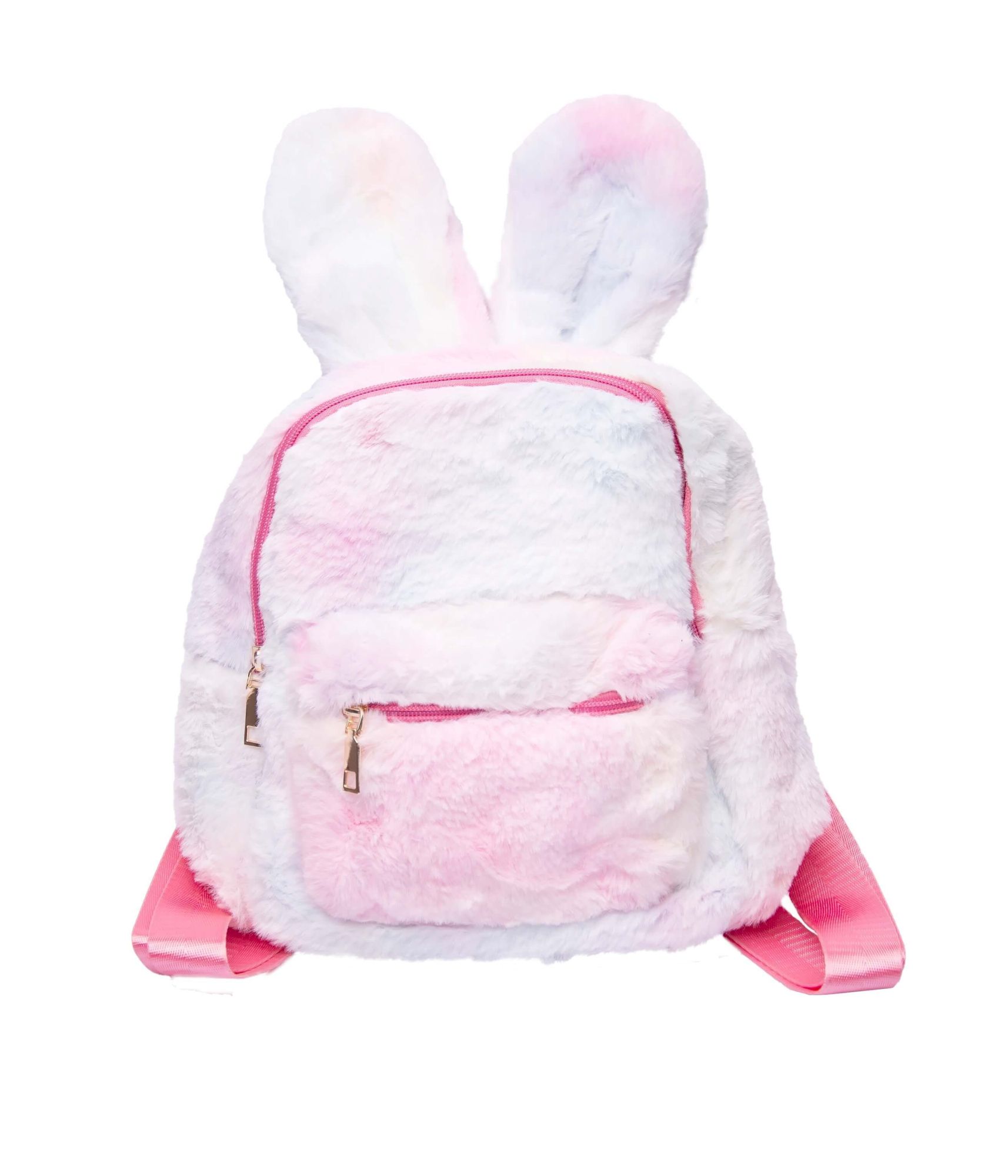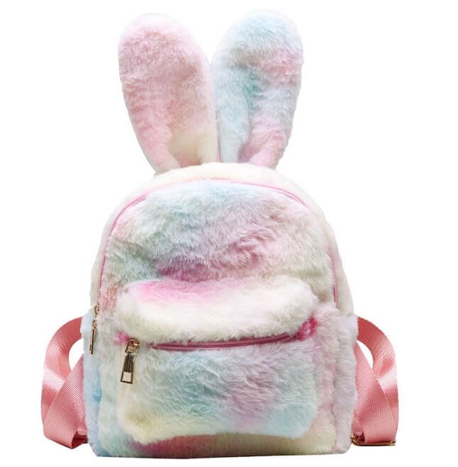 Очаровательный рюкзак с ушками в радужных пастельных пятнах, покрытый мягким пушистым материалом.